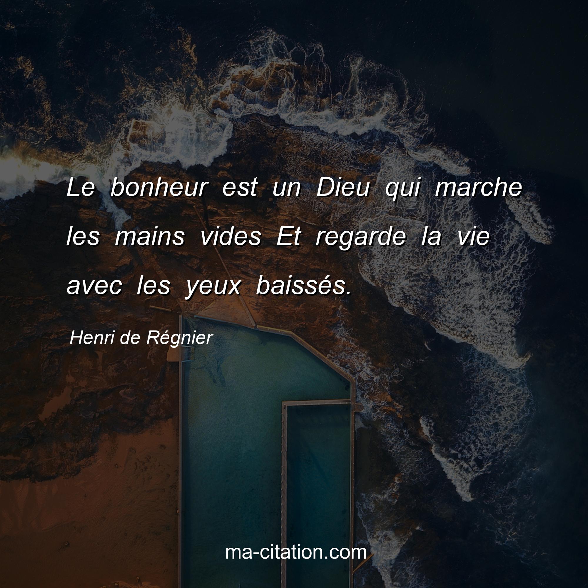 Citation sur la vie de Henri de Régnier :Le bonheur est un Dieu qui marche les mains vides Et regarde la vie avec les yeux baissés.