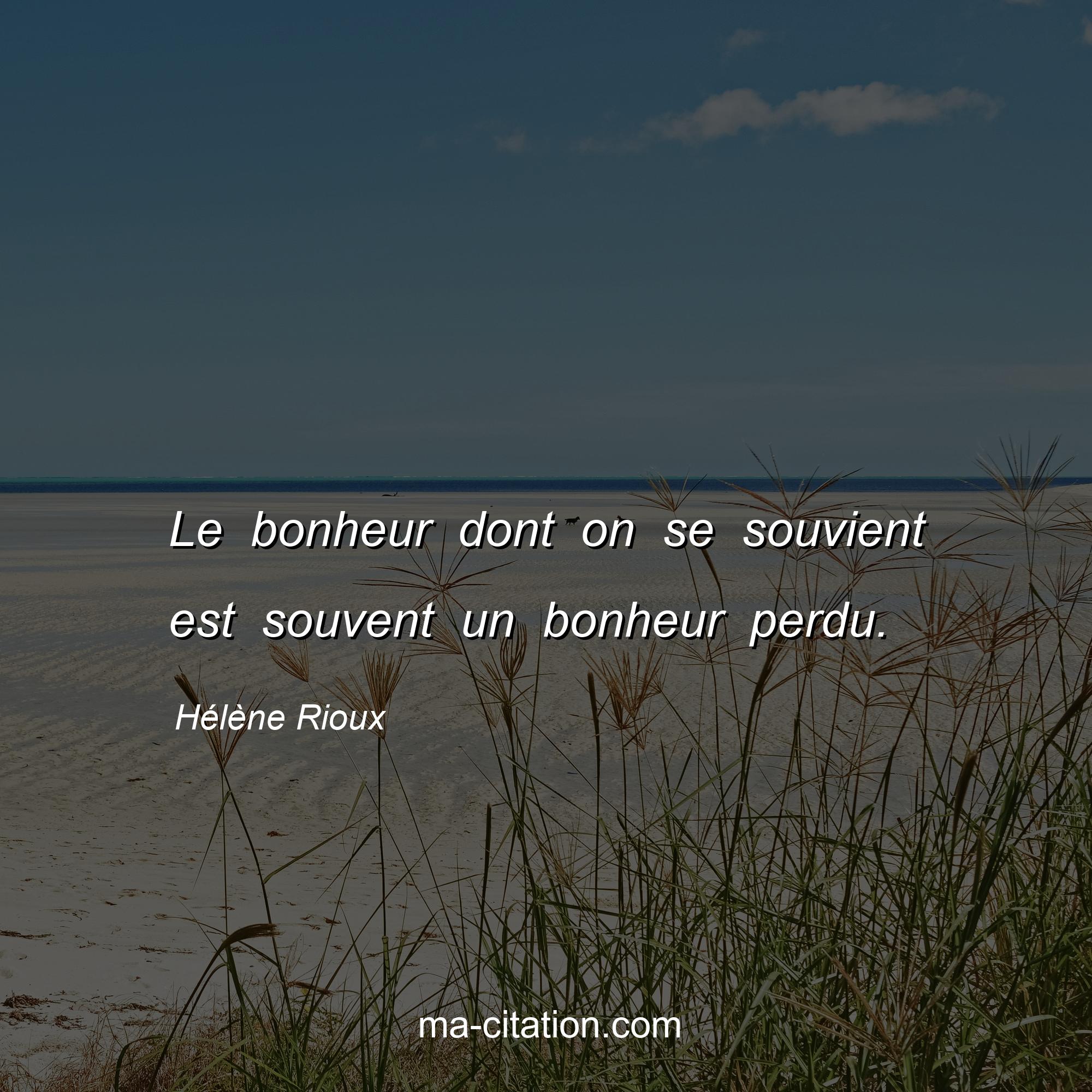 Hélène Rioux est l'auteur de la citation sur la vie "Le bonheur dont on se souvient est souvent un bonheur perdu.".