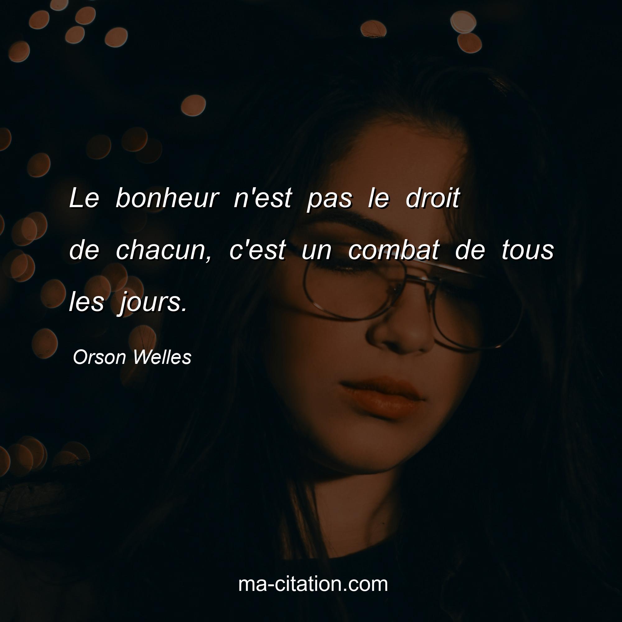 Citation sur la vie d'Orson Welles :Le bonheur n'est pas le droit de chacun, c'est un combat de tous les jours.