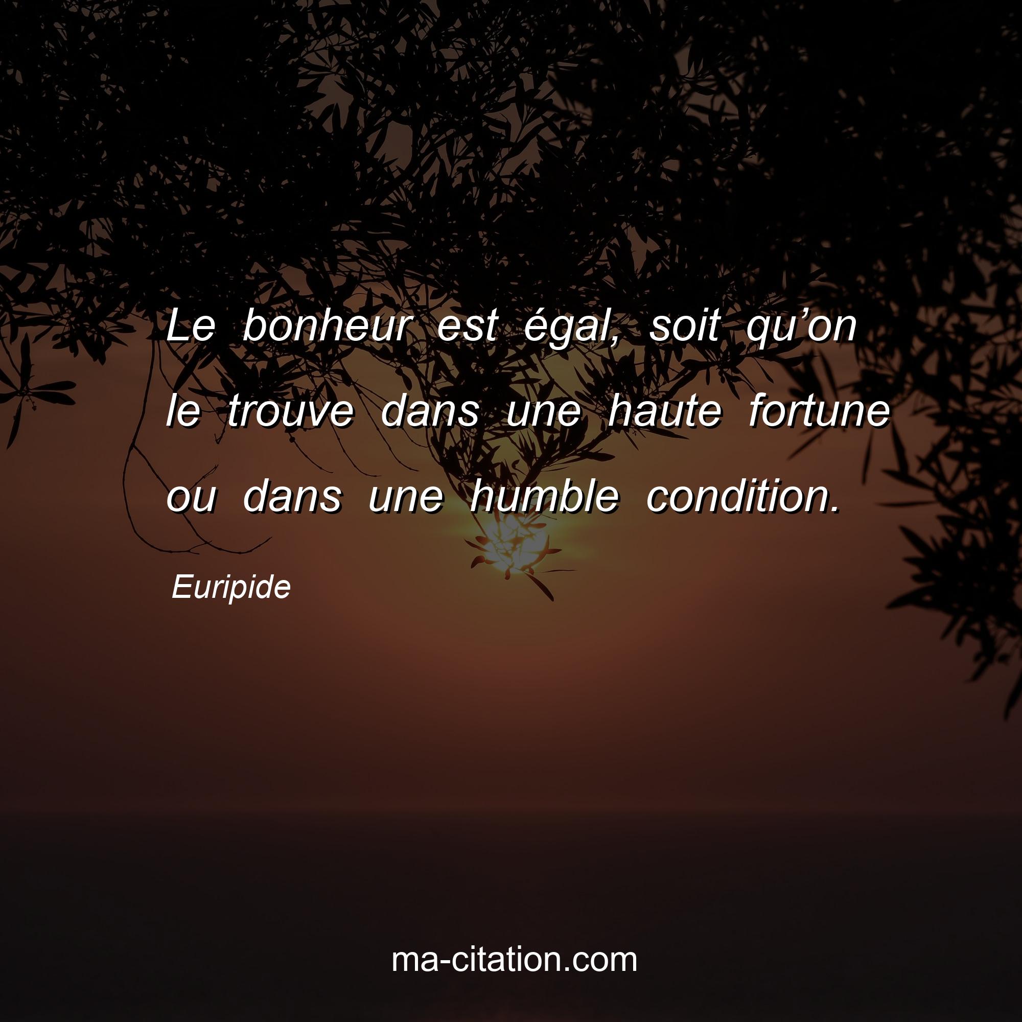 Euripide est l'auteur de la citation sur la vie "Le bonheur est égal, soit qu’on le trouve dans une haute fortune ou dans une humble condition.".