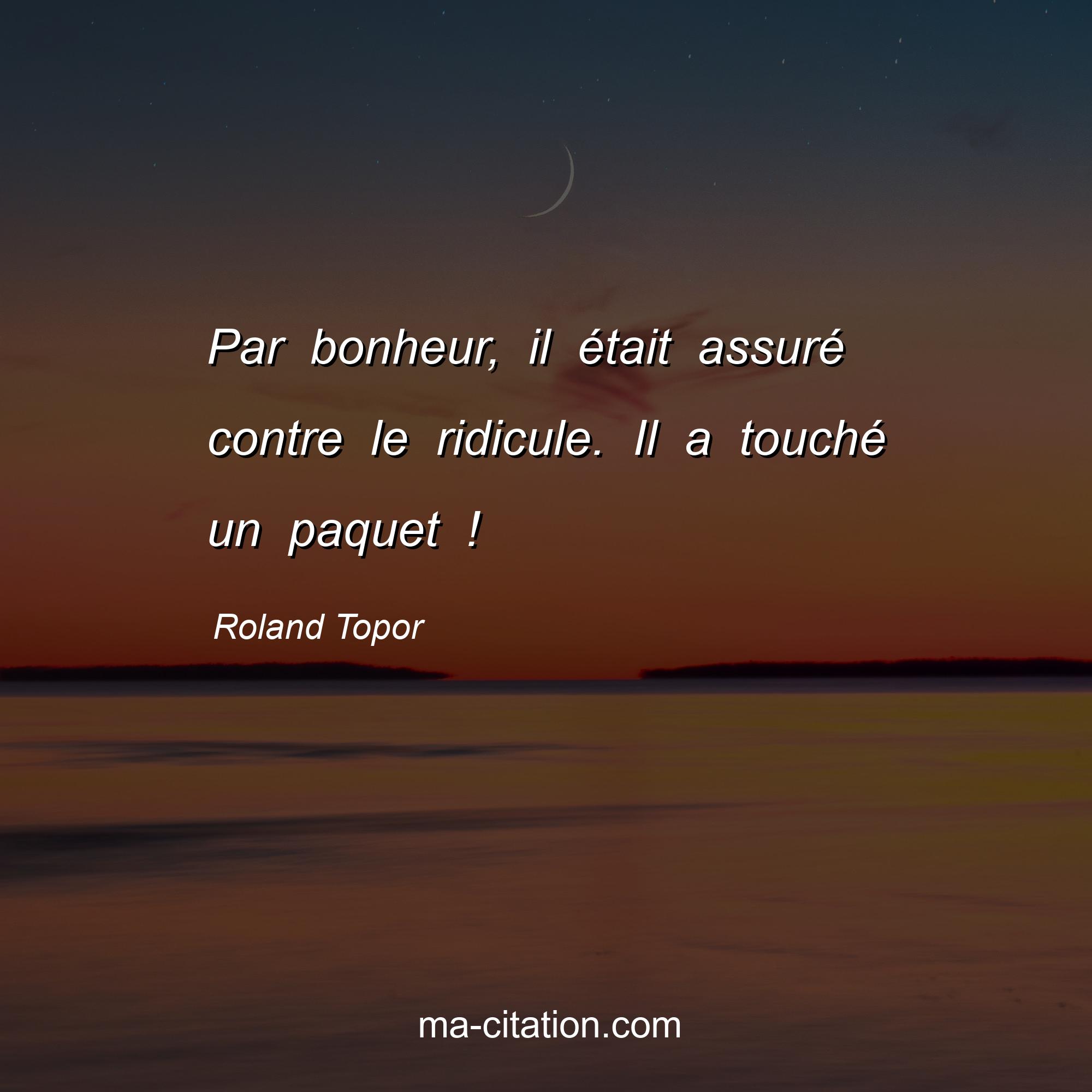 Citation sur la vie de Roland Topor :Par bonheur, il était assuré contre le ridicule. Il a touché un paquet !