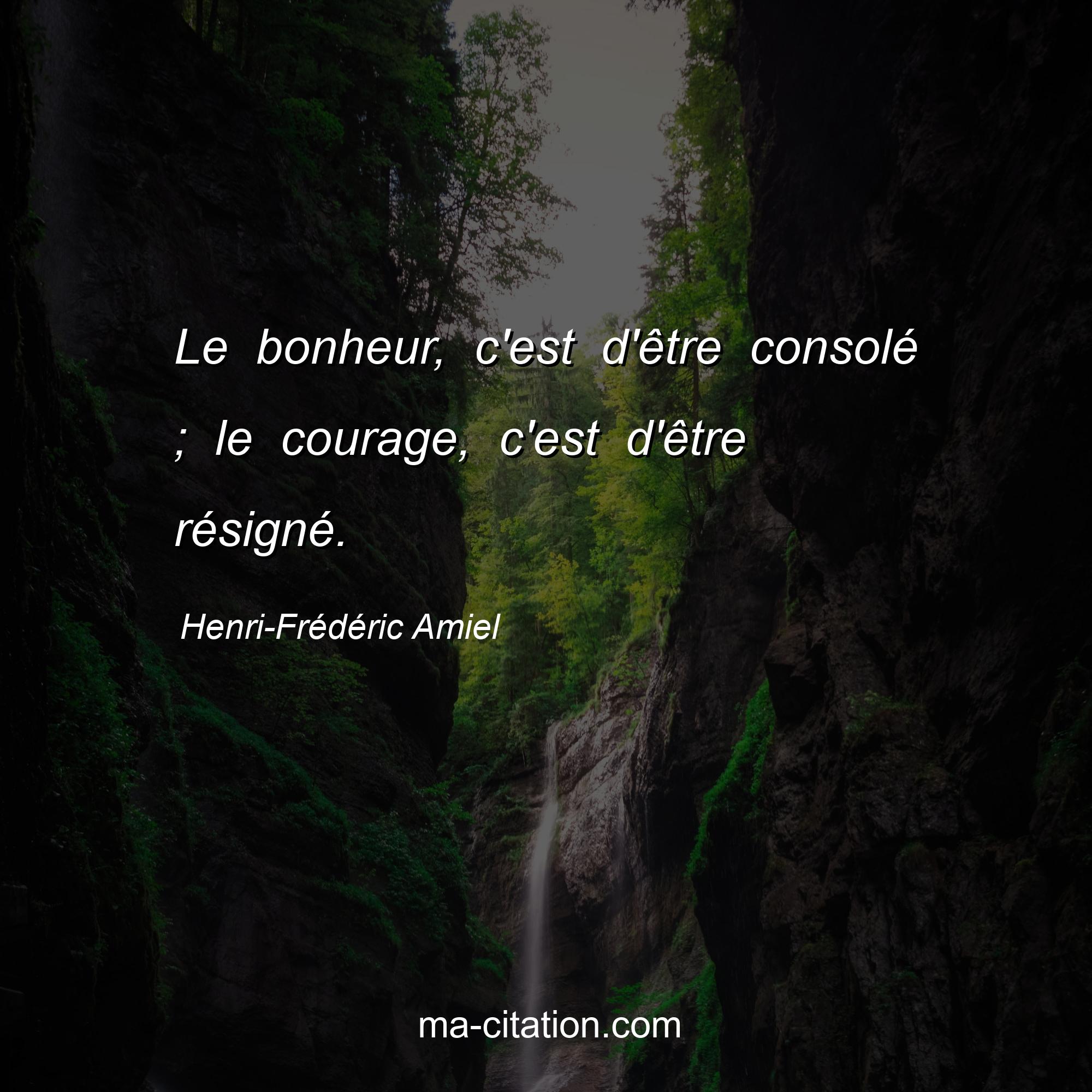 Citation sur la vie de Henri-Frédéric Amiel :Le bonheur, c'est d'être consolé ; le courage, c'est d'être résigné.