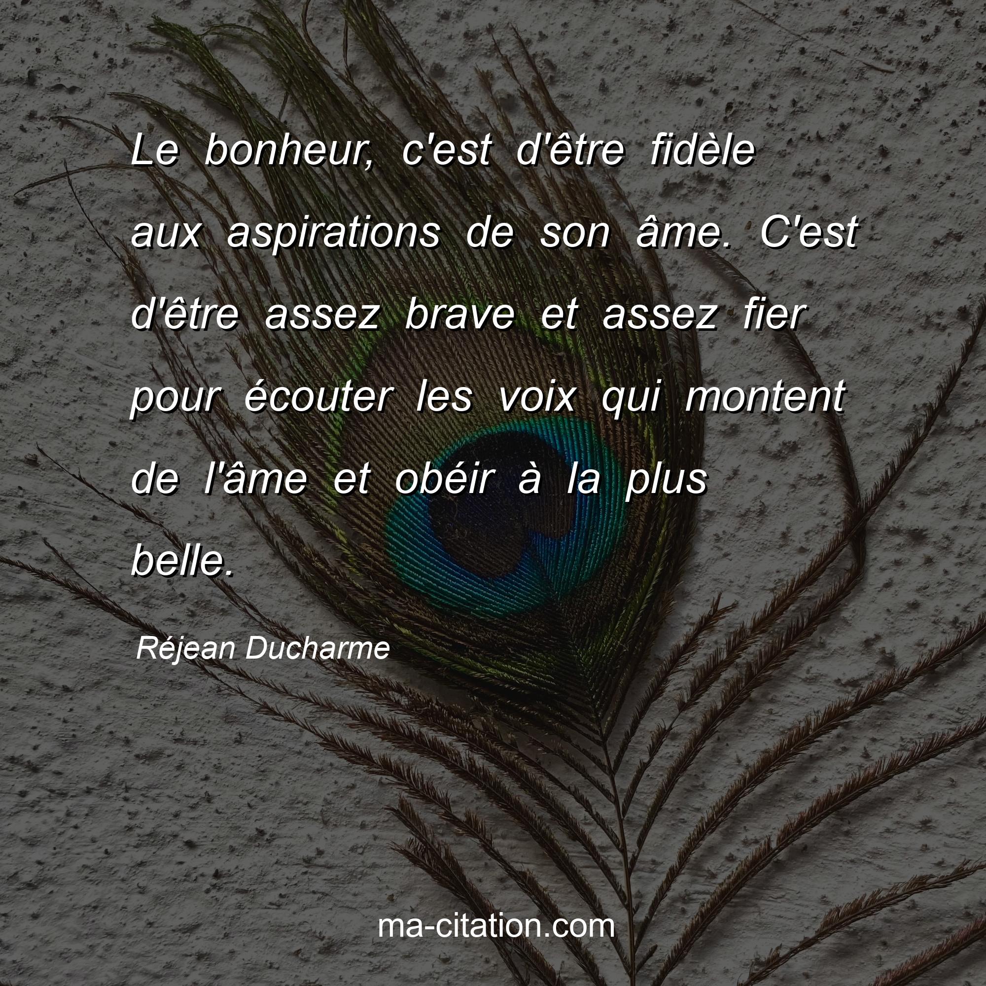 Citation sur la vie de Réjean Ducharme :Le bonheur, c'est d'être fidèle aux aspirations de son âme. C'est d'être assez brave et assez fier pour écouter les voix qui montent de l'âme et obéir à la plus belle.