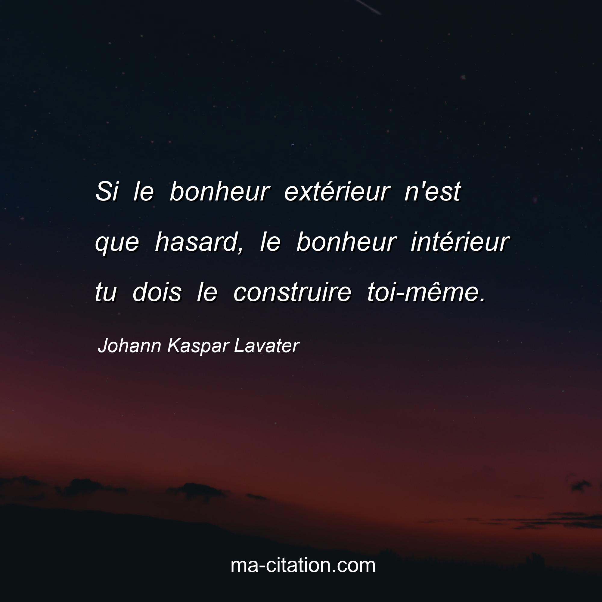 Johann Kaspar Lavater est l'auteur de la citation sur la vie "Si le bonheur extérieur n'est que hasard, le bonheur intérieur tu dois le construire toi-même.".