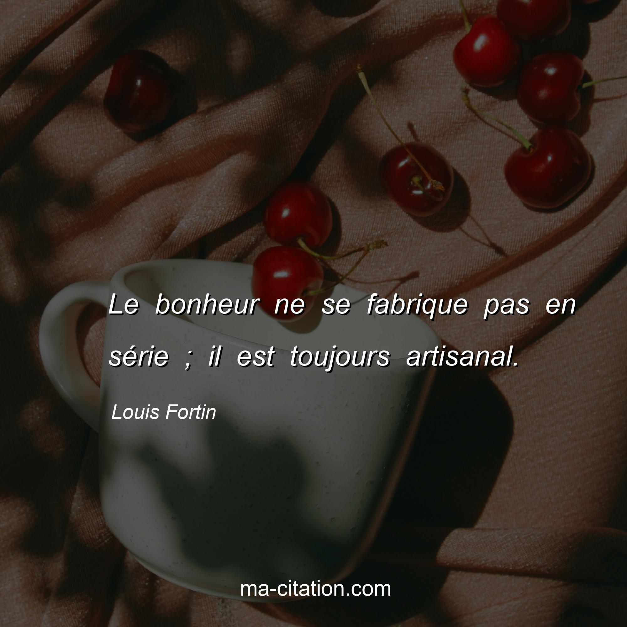 Louis Fortin est l'auteur de la citation sur la vie "Le bonheur ne se fabrique pas en série ; il est toujours artisanal.".