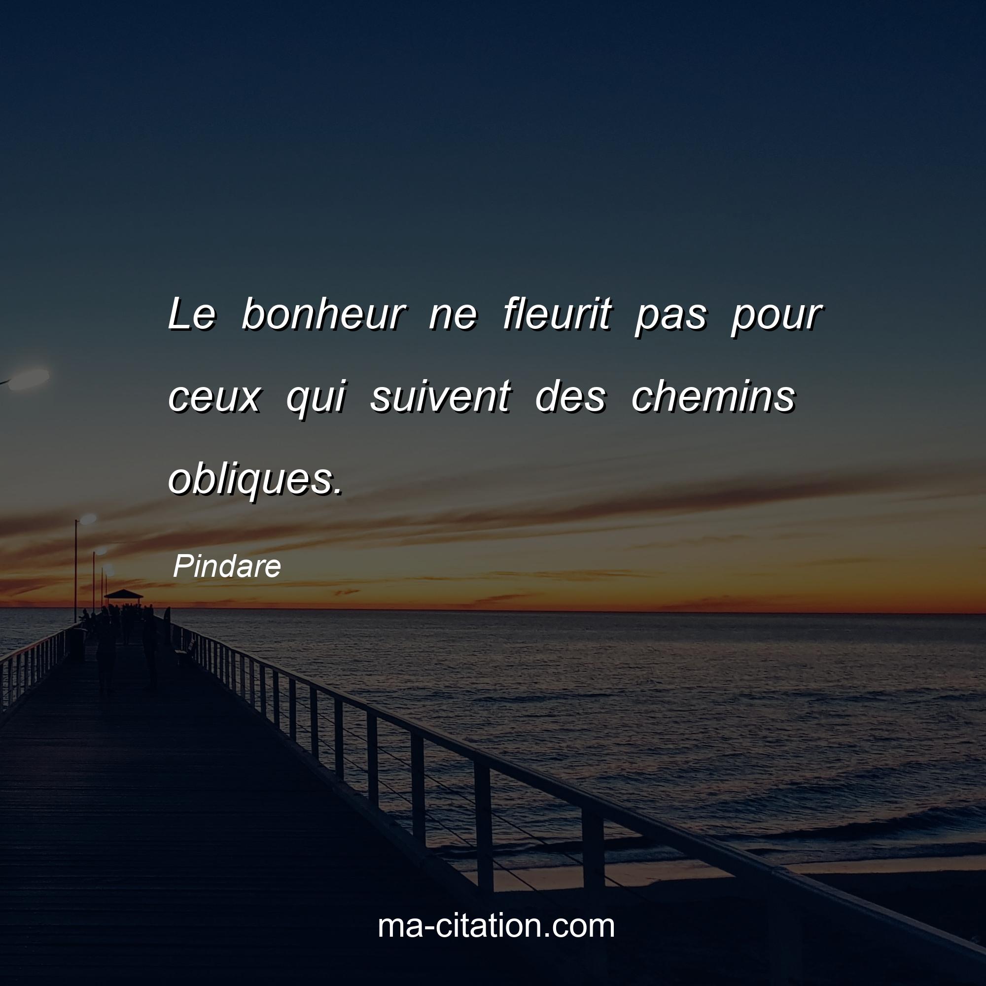 Pindare est l'auteur de la citation sur la vie "Le bonheur ne fleurit pas pour ceux qui suivent des chemins obliques.".