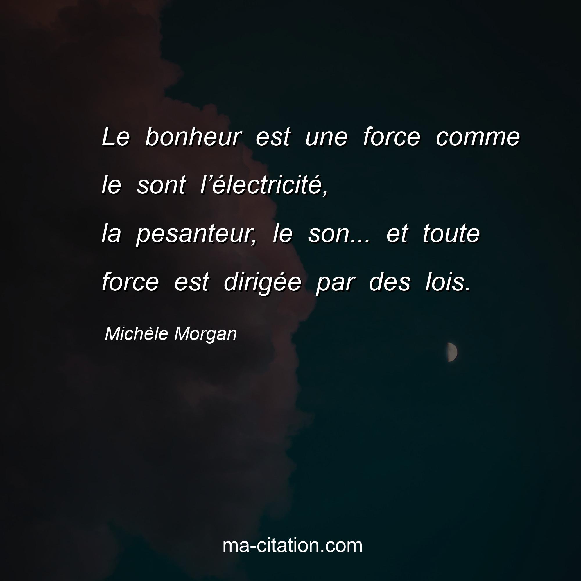 Citation sur la vie de Michèle Morgan :Le bonheur est une force comme le sont l’électricité, la pesanteur, le son... et toute force est dirigée par des lois.