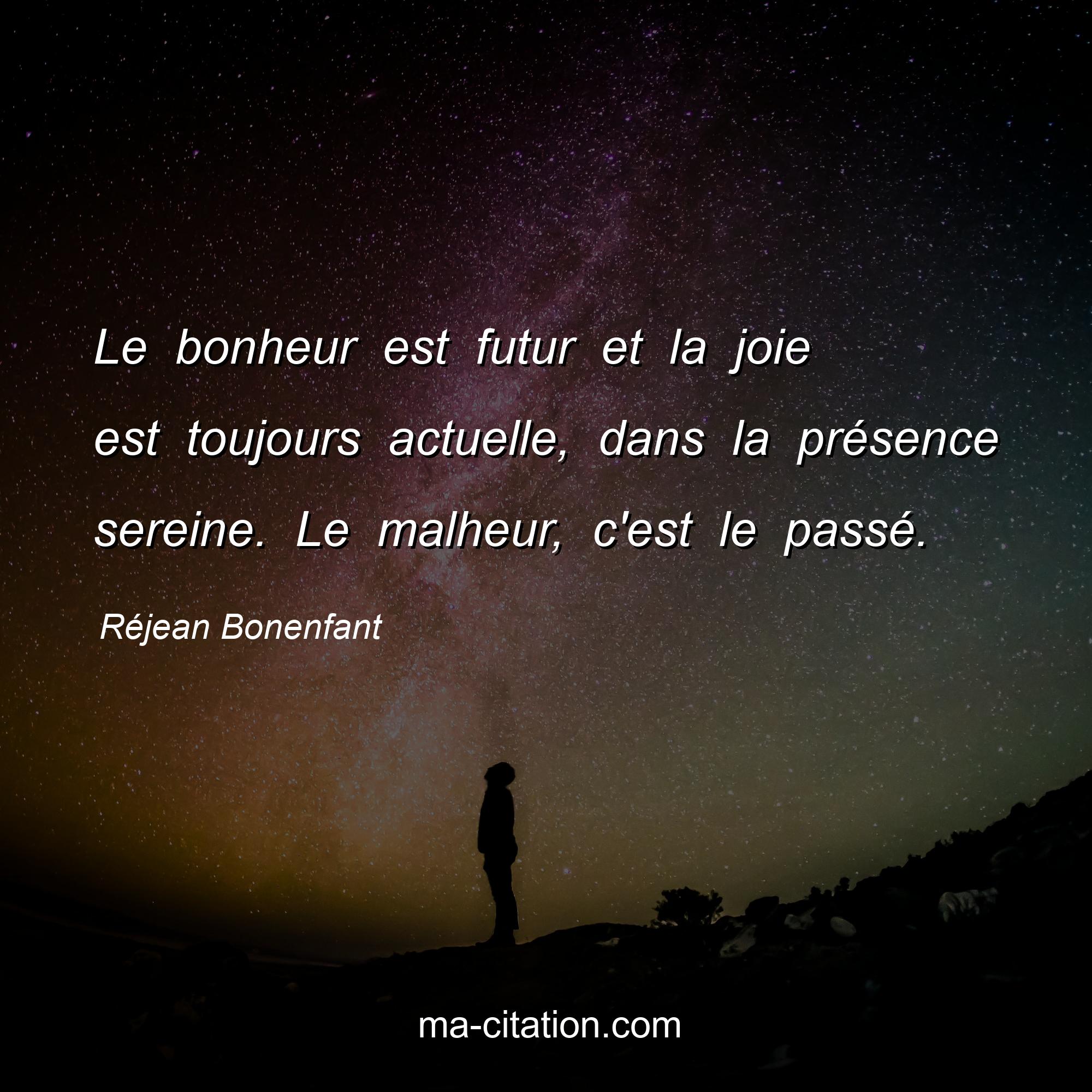 Citation sur la vie de Réjean Bonenfant :Le bonheur est futur et la joie est toujours actuelle, dans la présence sereine. Le malheur, c'est le passé.