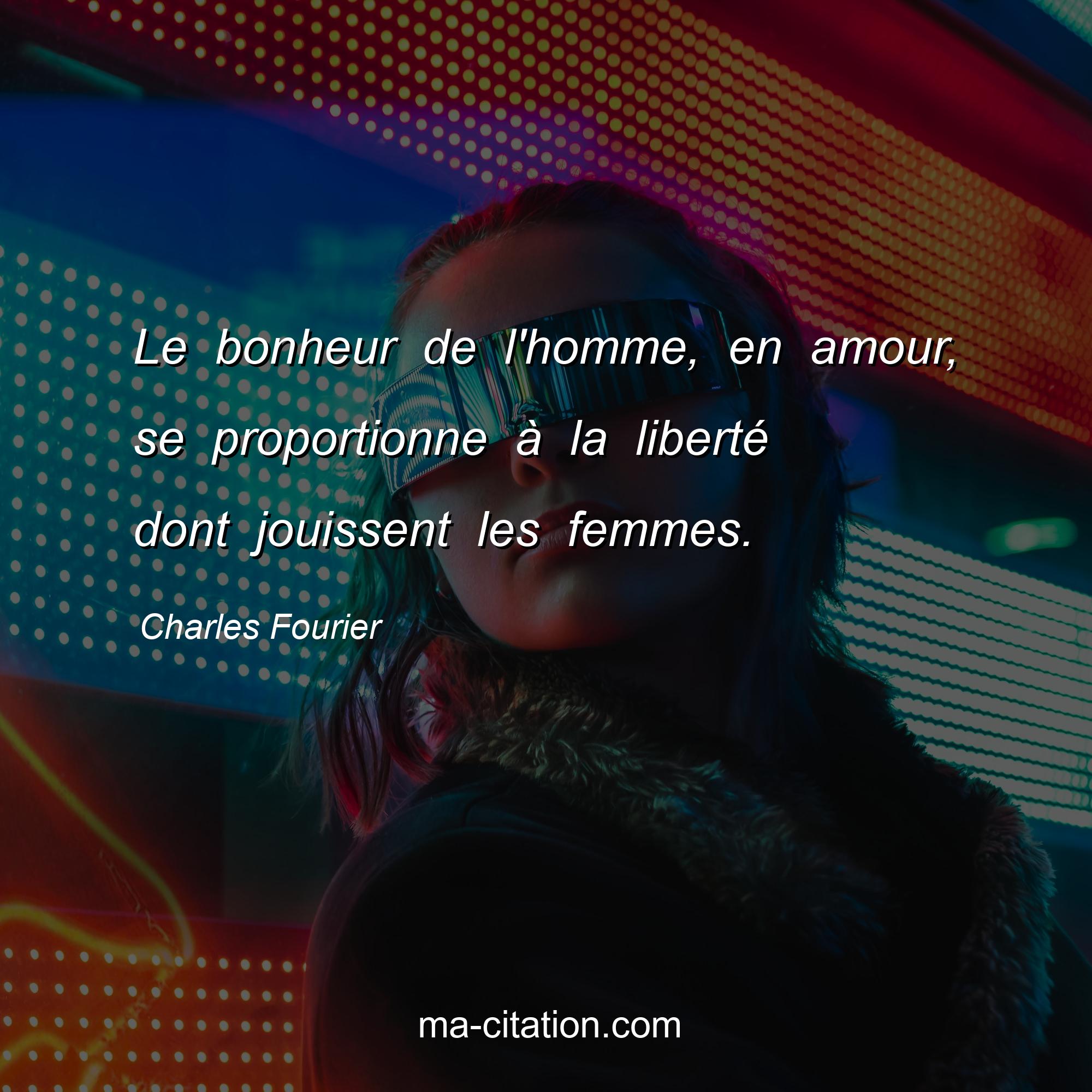 Charles Fourier est l'auteur de la citation sur la vie "Le bonheur de l'homme, en amour, se proportionne à la liberté dont jouissent les femmes.".