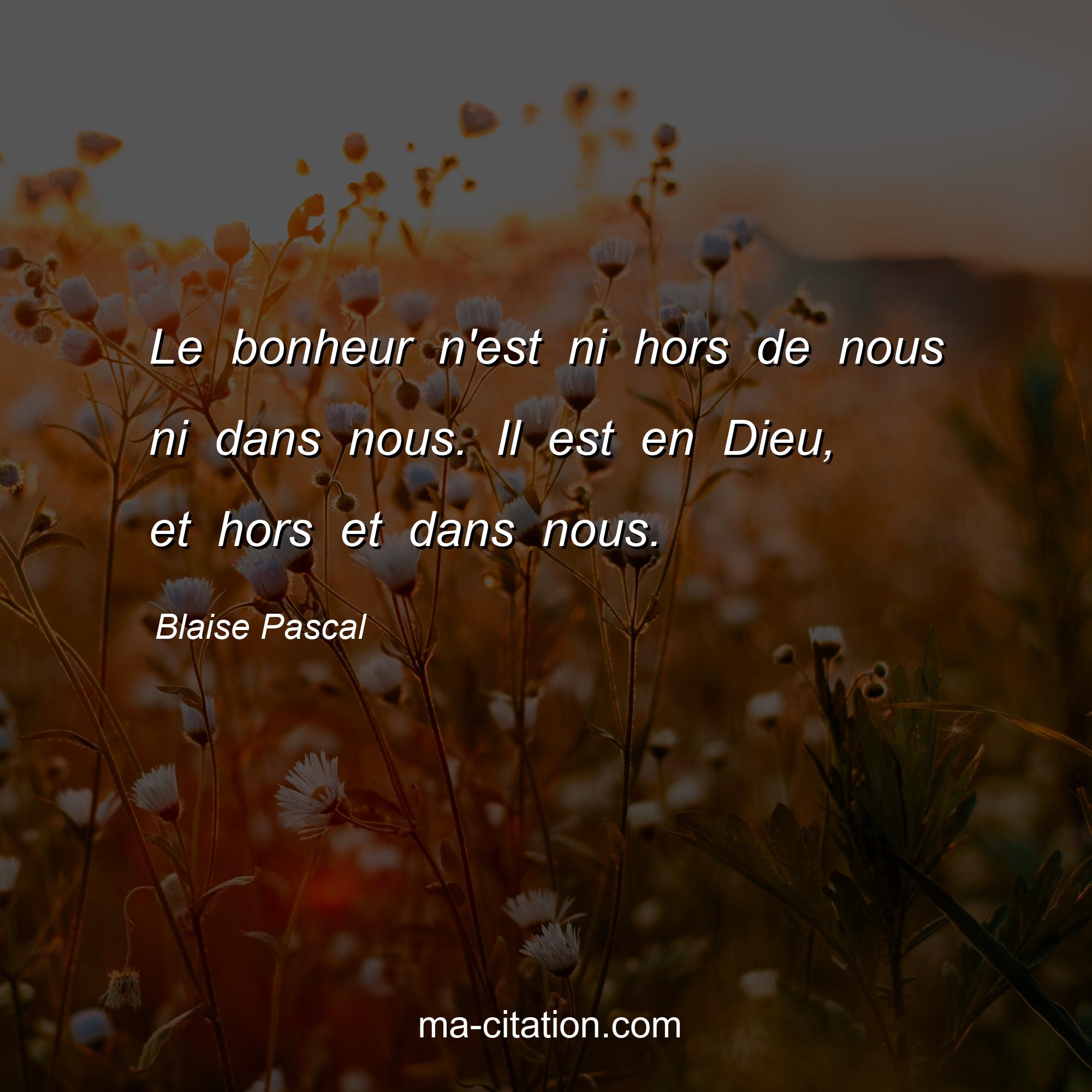Le bonheur n'est ni hors de nous ni dans nous. Il est en Dieu, et hors et dans nous.