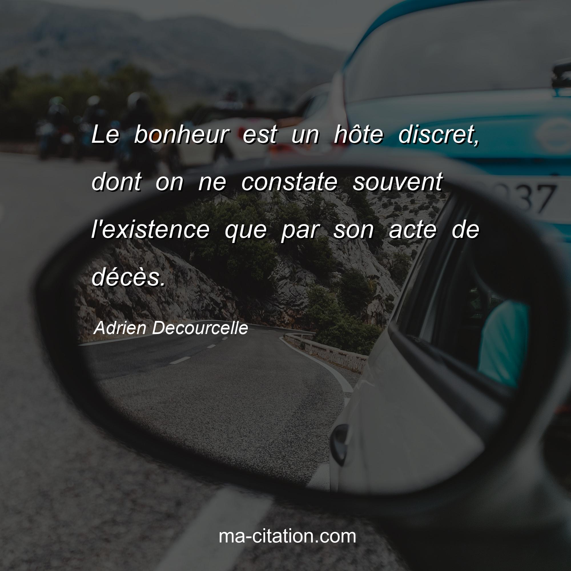 Adrien Decourcelle est l'auteur de la citation sur la vie "Le bonheur est un hôte discret, dont on ne constate souvent l'existence que par son acte de décès.".