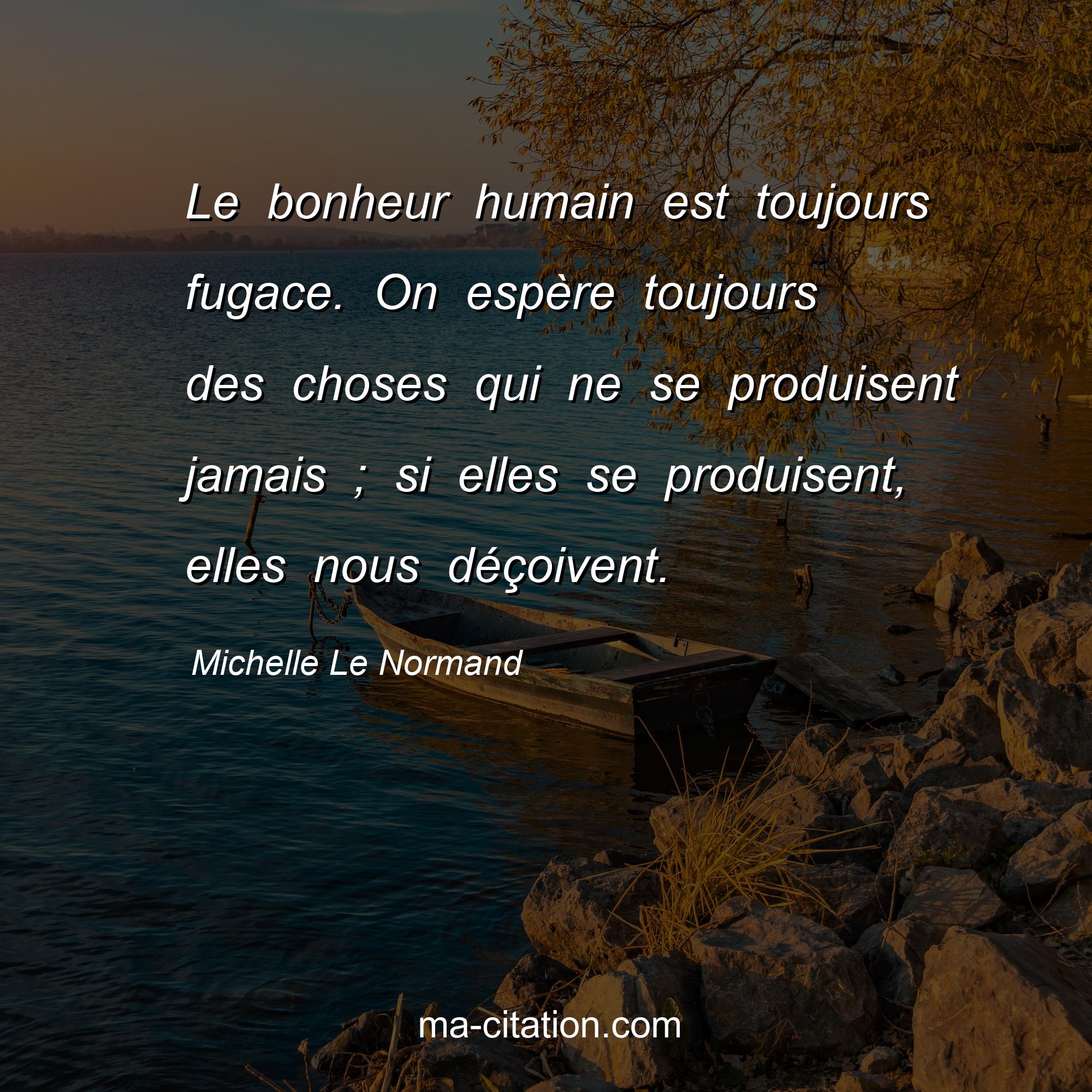 Citation sur la vie de Michelle Le Normand :Le bonheur humain est toujours fugace. On espère toujours des choses qui ne se produisent jamais ; si elles se produisent, elles nous déçoivent.