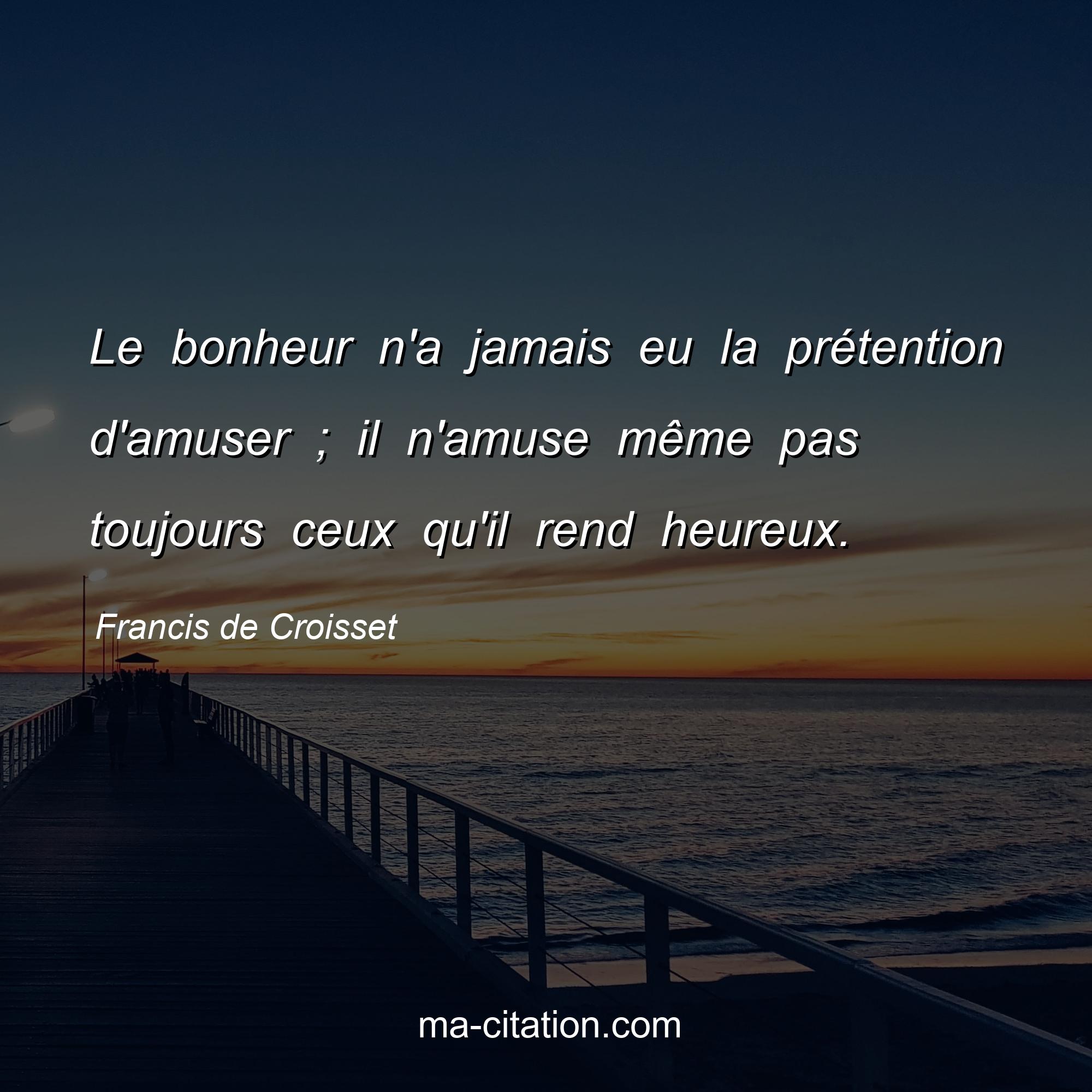 Citation sur la vie de Francis de Croisset :Le bonheur n'a jamais eu la prétention d'amuser ; il n'amuse même pas toujours ceux qu'il rend heureux.