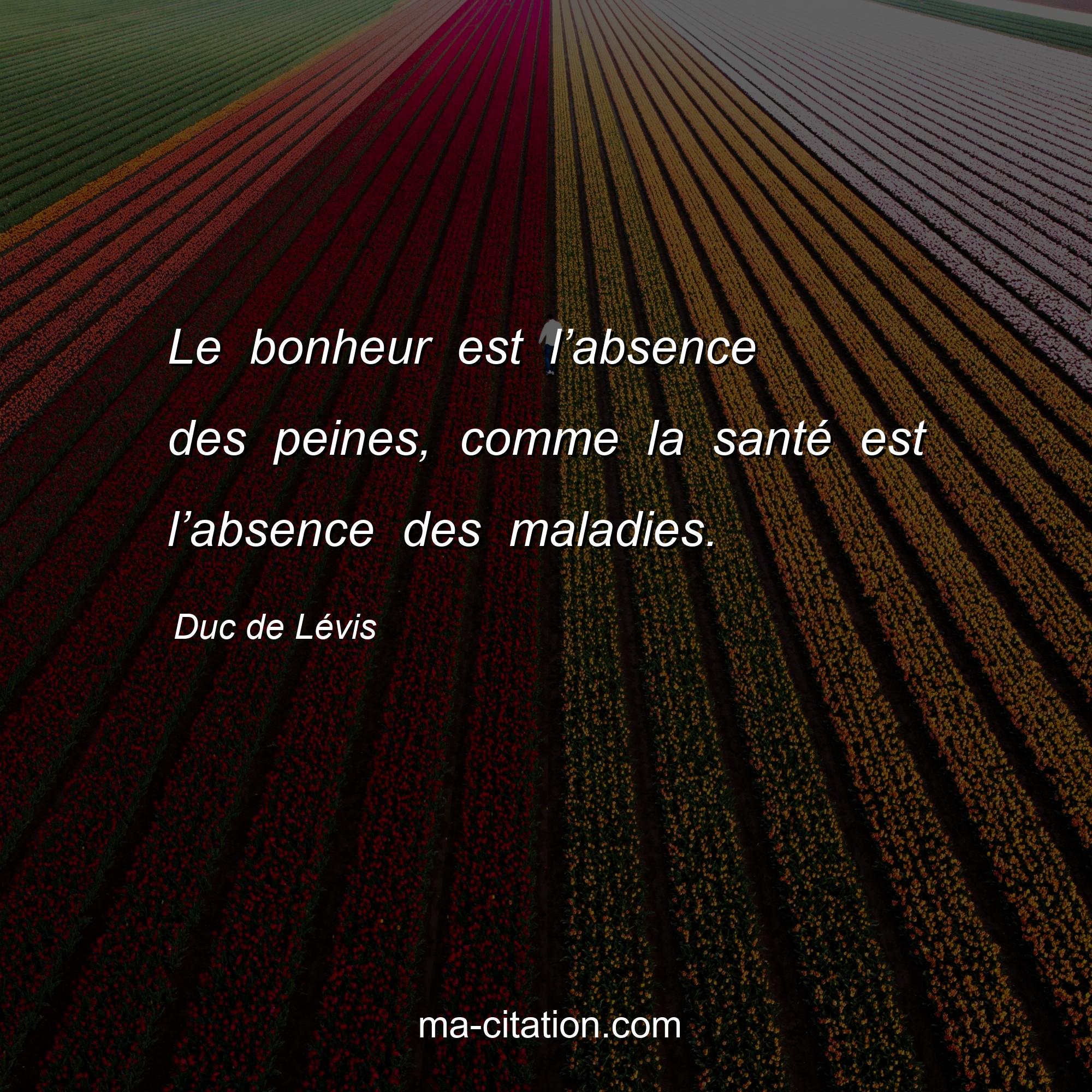 Citation sur la vie de Duc de Lévis :Le bonheur est l’absence des peines, comme la santé est l’absence des maladies.