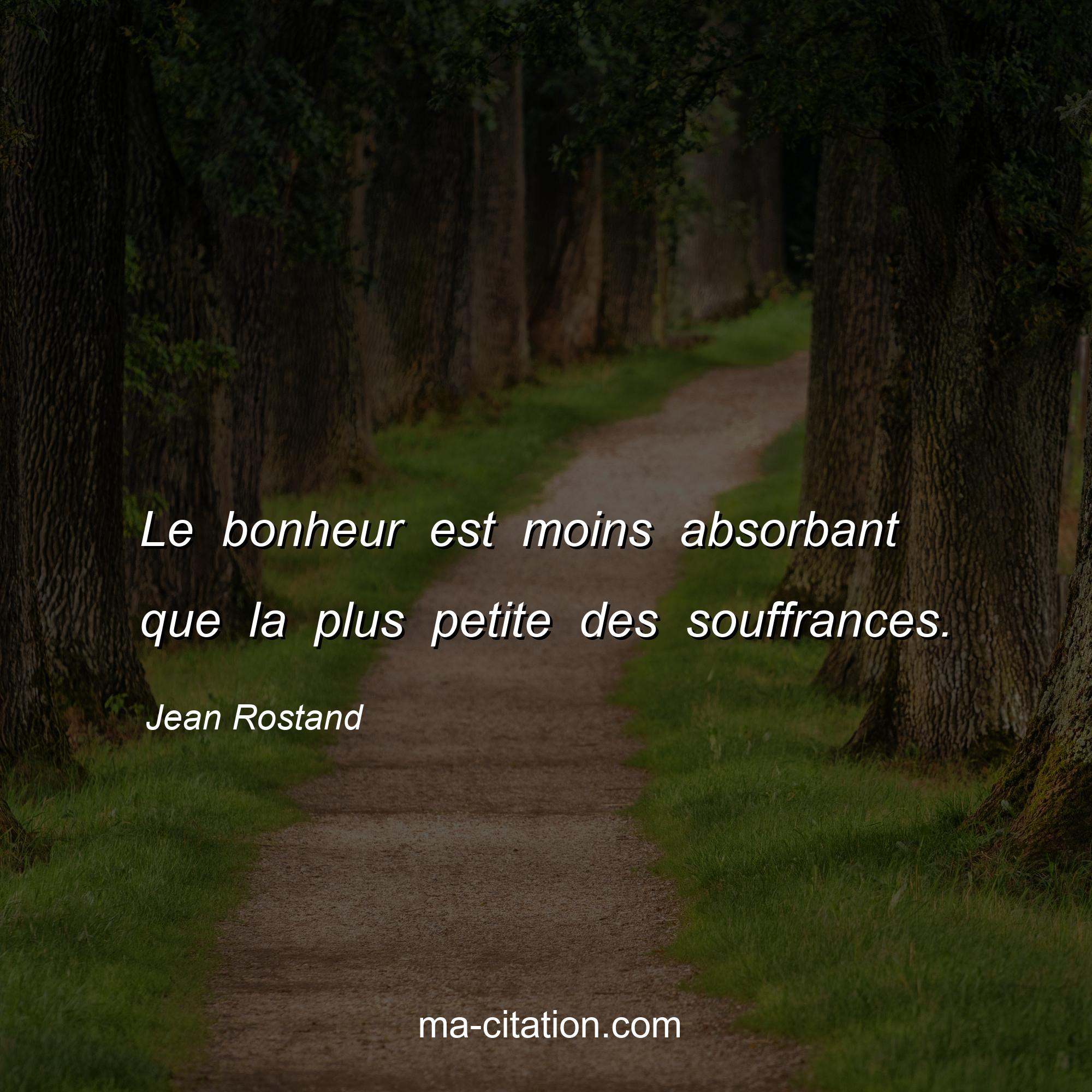 Citation sur la vie de Jean Rostand :Le bonheur est moins absorbant que la plus petite des souffrances.
