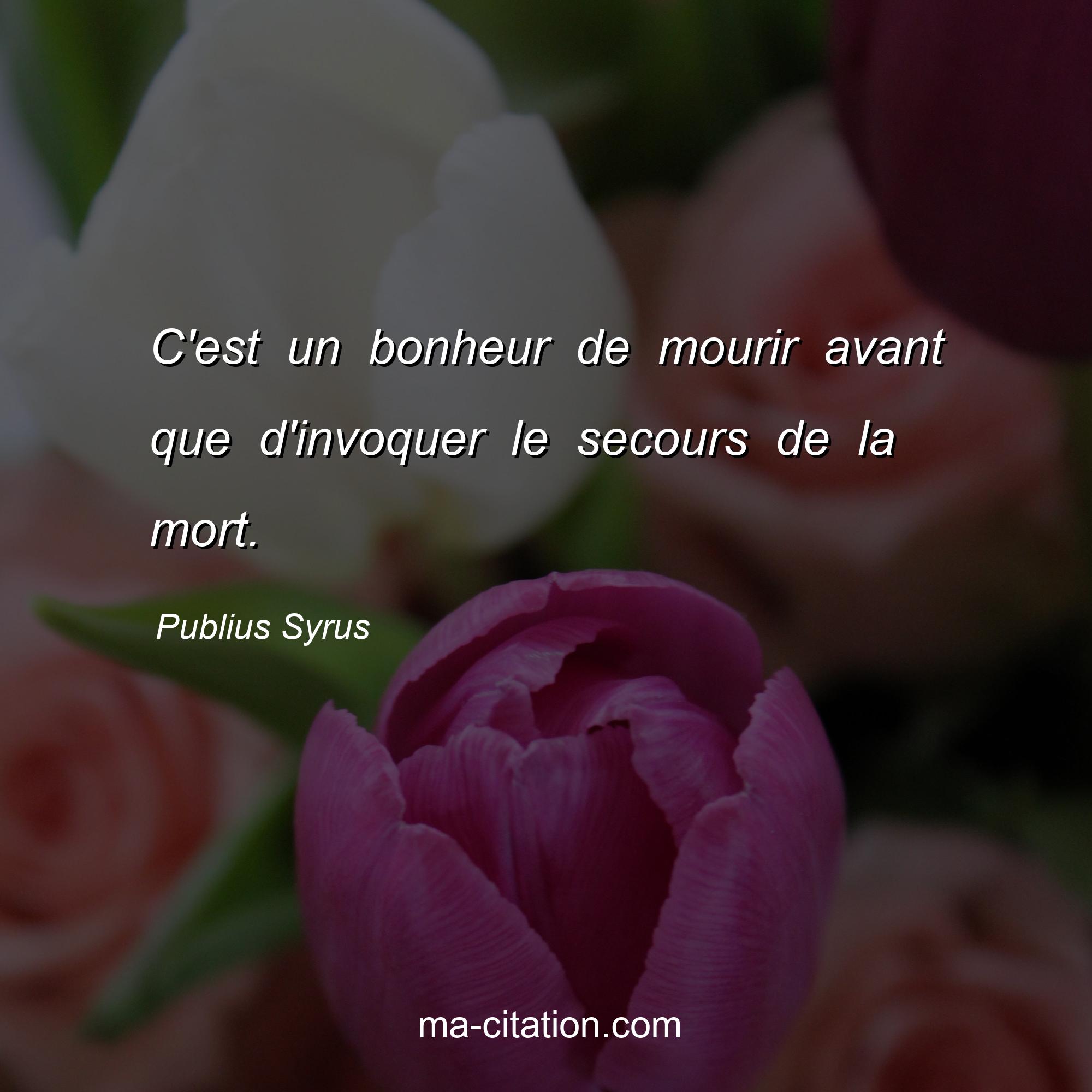 Citation sur la vie de Publius Syrus :C'est un bonheur de mourir avant que d'invoquer le secours de la mort.