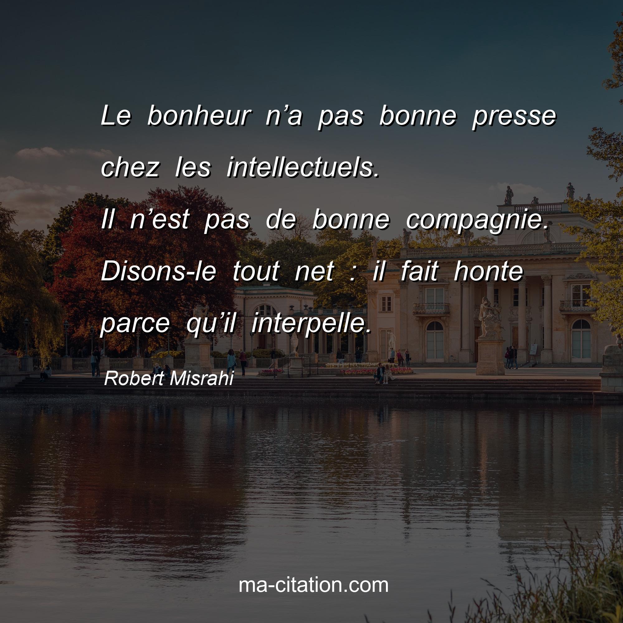 Citation sur la vie de Robert Misrahi :Le bonheur n’a pas bonne presse chez les intellectuels. Il n’est pas de bonne compagnie. Disons-le tout net : il fait honte parce qu’il interpelle.
