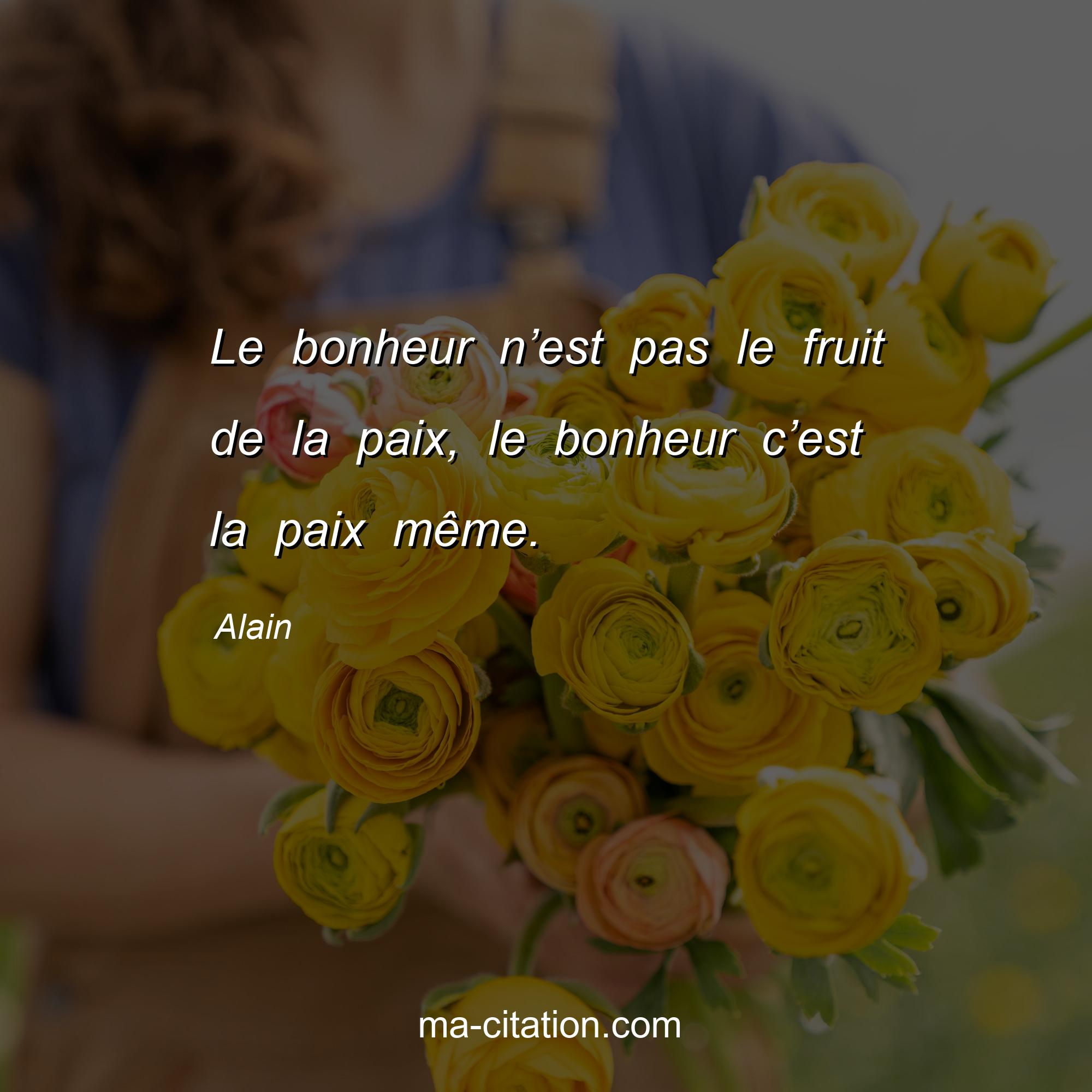 Alain est l'auteur de la citation sur la vie "Le bonheur n’est pas le fruit de la paix, le bonheur c’est la paix même.".
