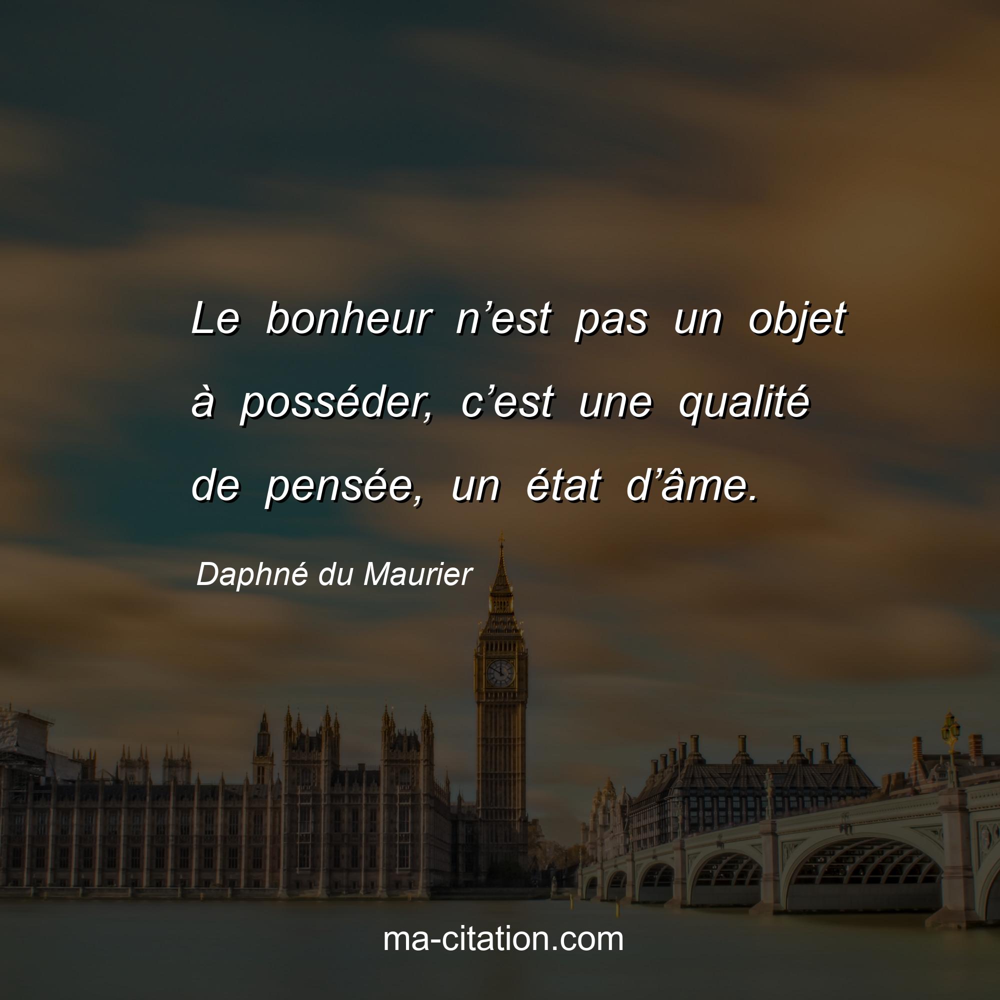 Citation sur la vie de Daphné du Maurier :Le bonheur n’est pas un objet à posséder, c’est une qualité de pensée, un état d’âme.
