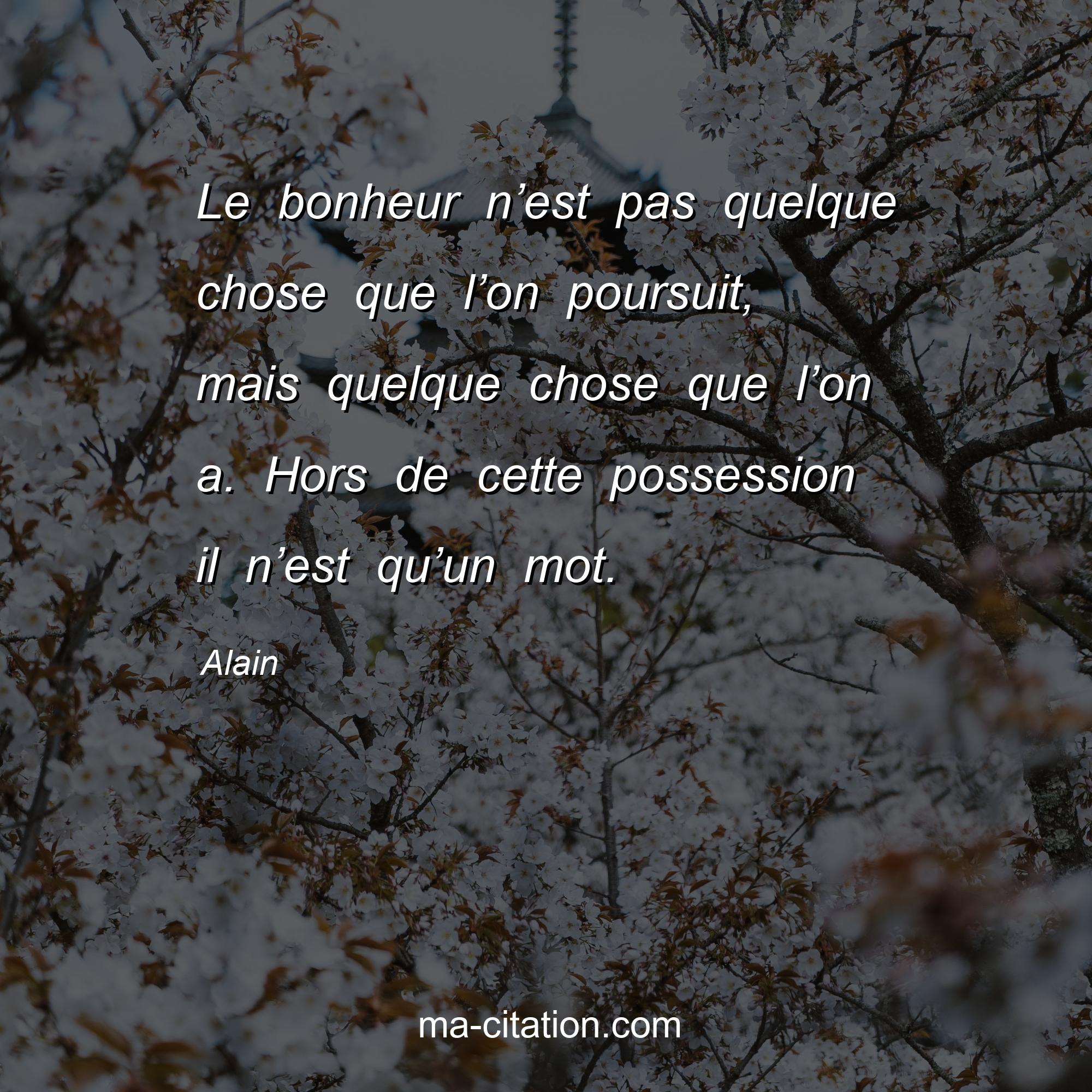 Alain est l'auteur de la citation sur la vie "Le bonheur n’est pas quelque chose que l’on poursuit, mais quelque chose que l’on a. Hors de cette possession il n’est qu’un mot.".