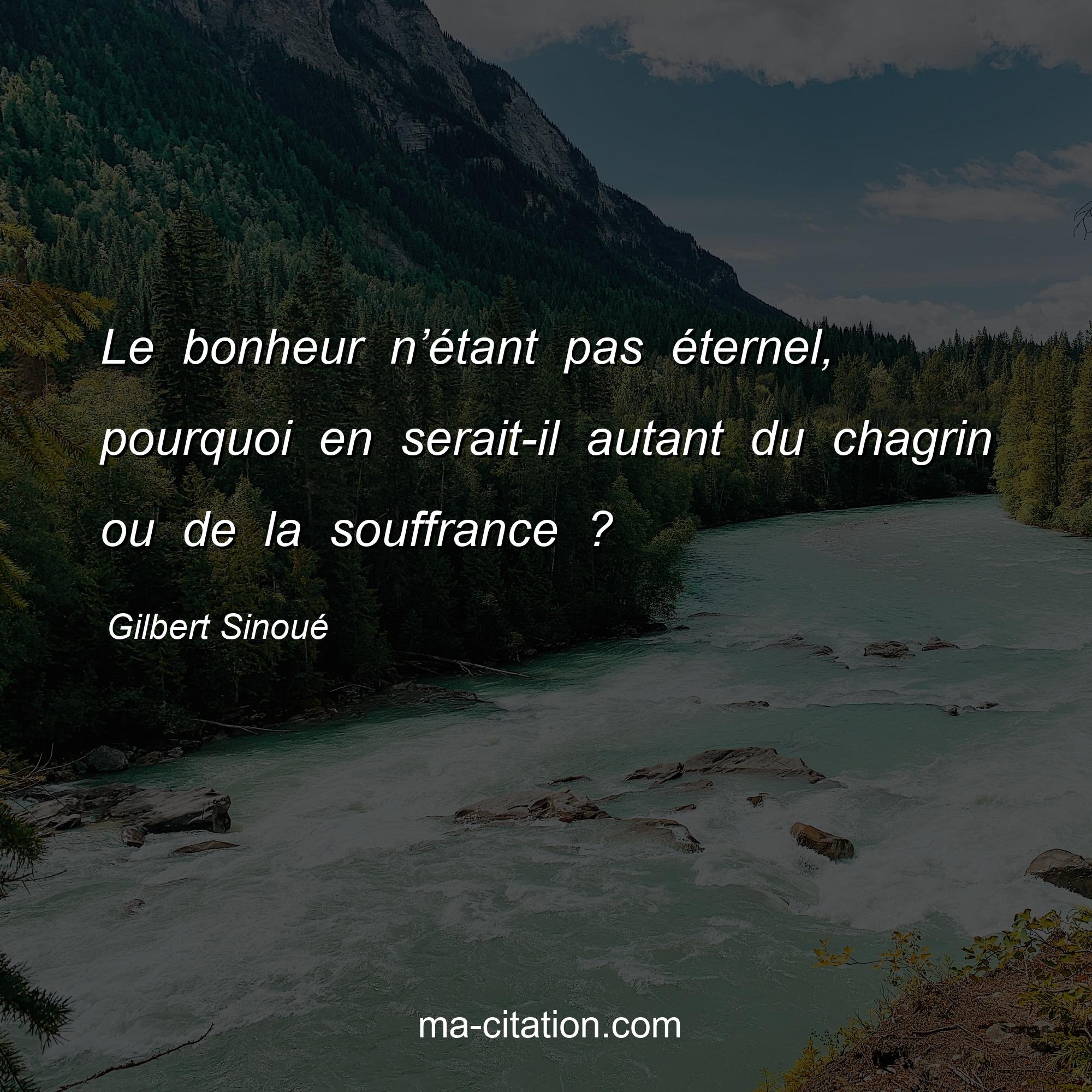 Citation sur la vie de Gilbert Sinoué :Le bonheur n’étant pas éternel, pourquoi en serait-il autant du chagrin ou de la souffrance ?