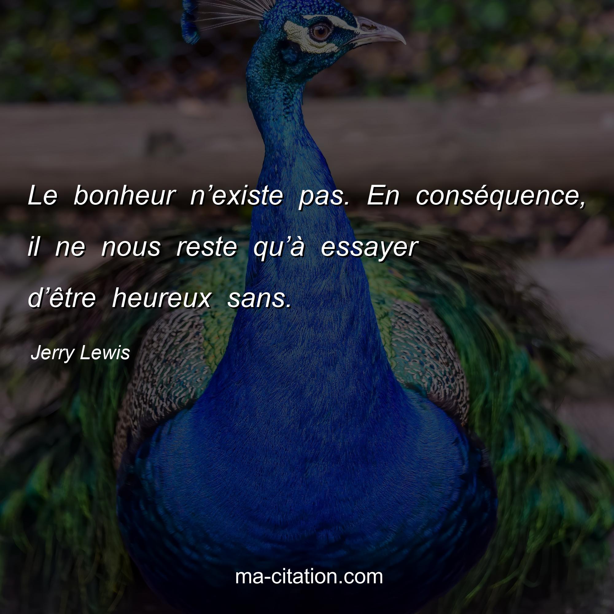 Citation sur la vie de Jerry Lewis :Le bonheur n’existe pas. En conséquence, il ne nous reste qu’à essayer d’être heureux sans.