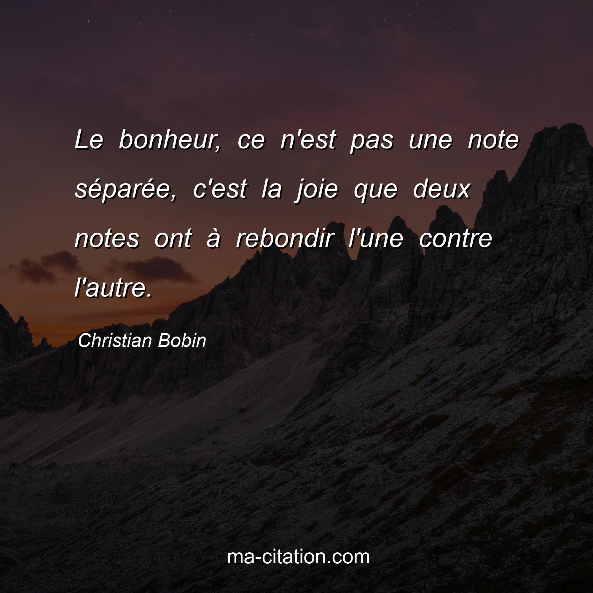 Citation sur la vie de Christian Bobin :Le bonheur, ce n'est pas une note séparée, c'est la joie que deux notes ont à rebondir l'une contre l'autre.