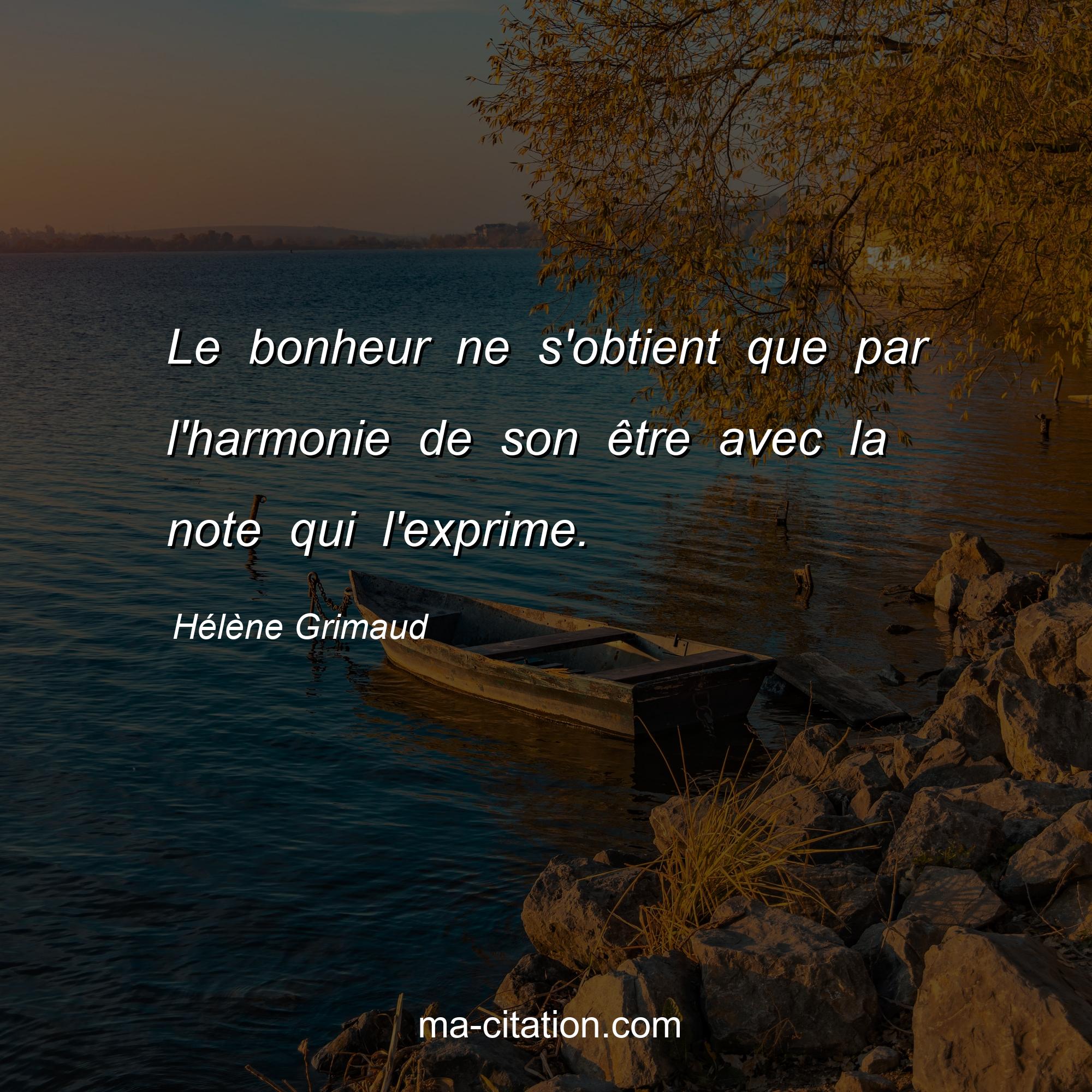 Citation sur la vie de Hélène Grimaud :Le bonheur ne s'obtient que par l'harmonie de son être avec la note qui l'exprime.