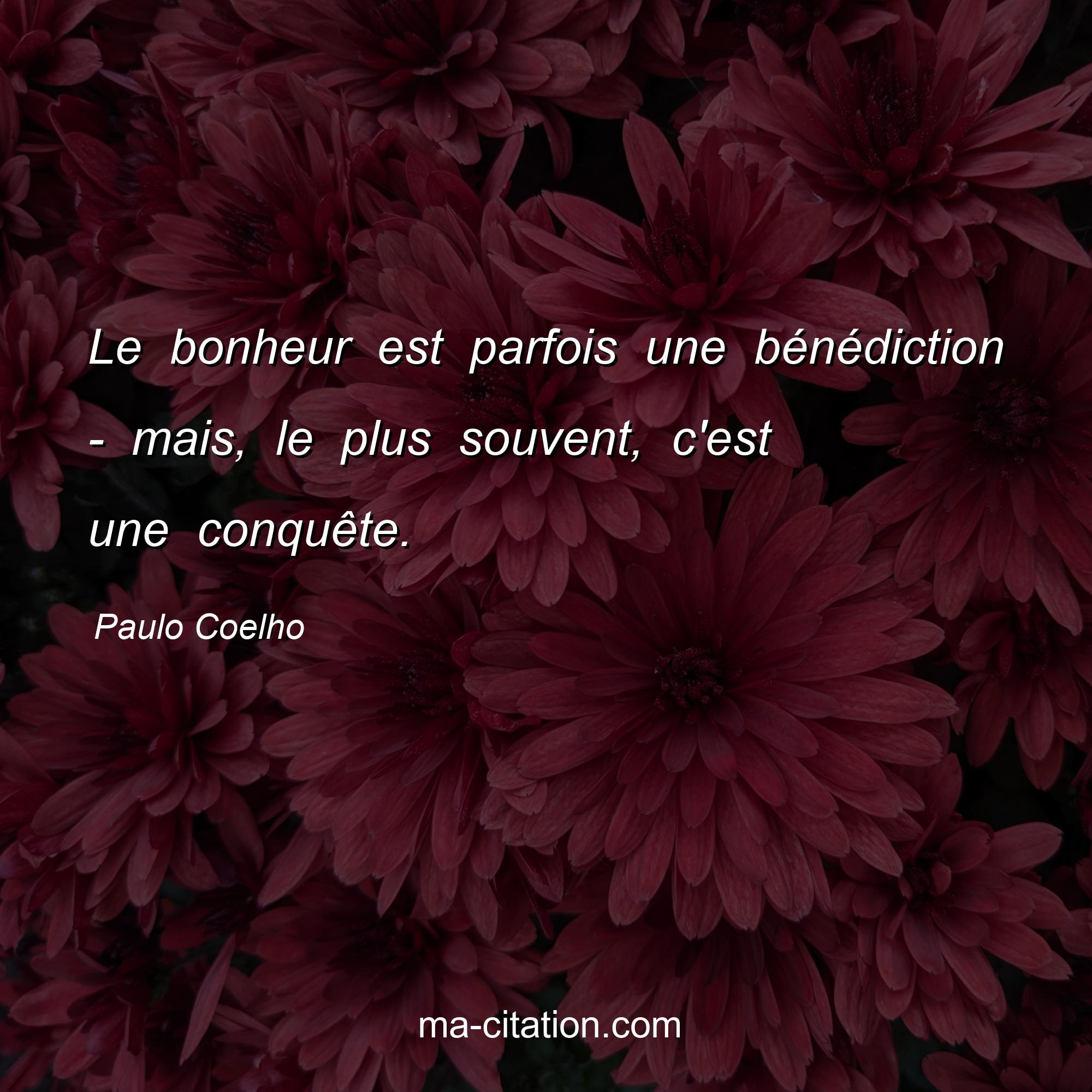Citation sur la vie de Paulo Coelho :Le bonheur est parfois une bénédiction - mais, le plus souvent, c'est une conquête.