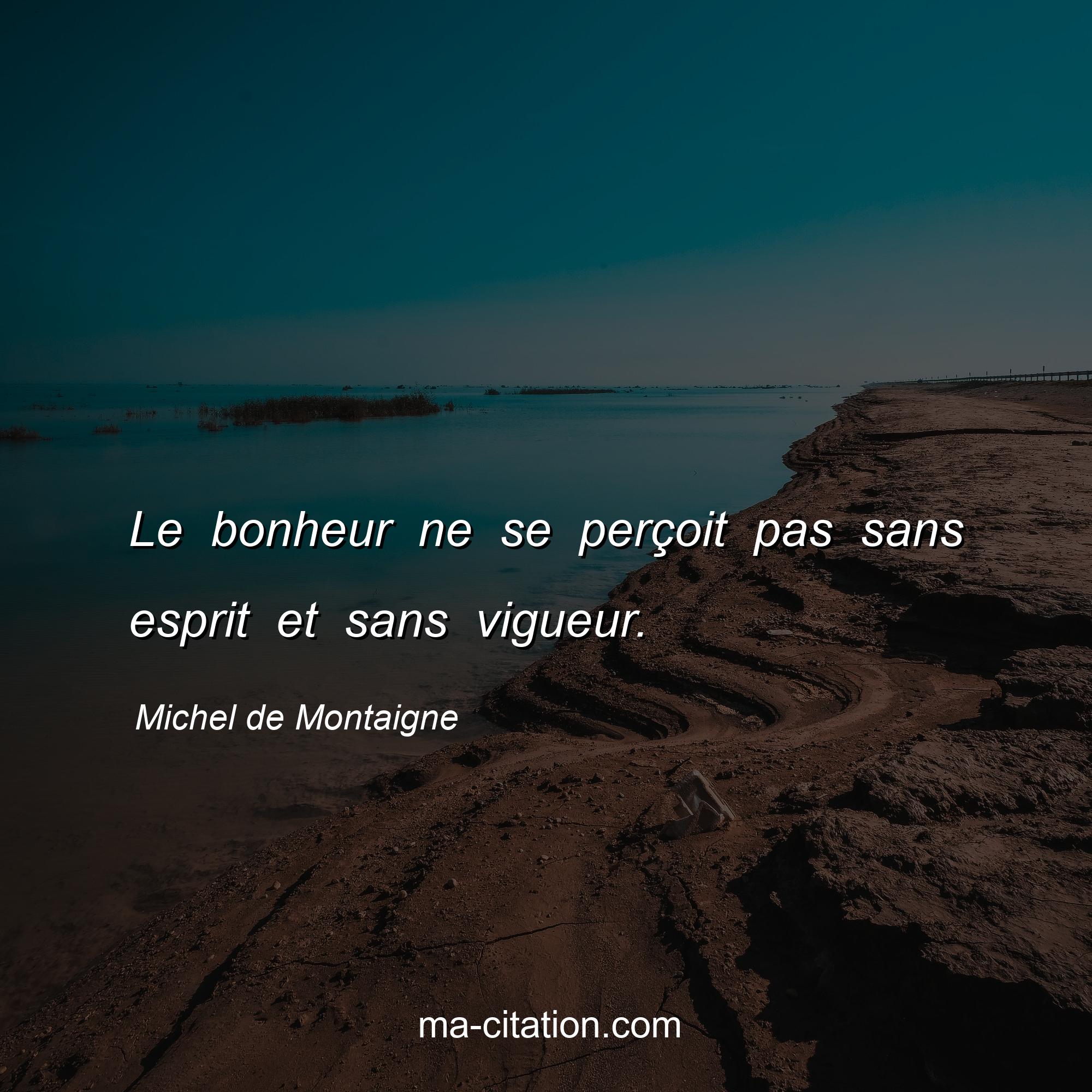 Citation sur la vie de Michel de Montaigne :Le bonheur ne se perçoit pas sans esprit et sans vigueur.