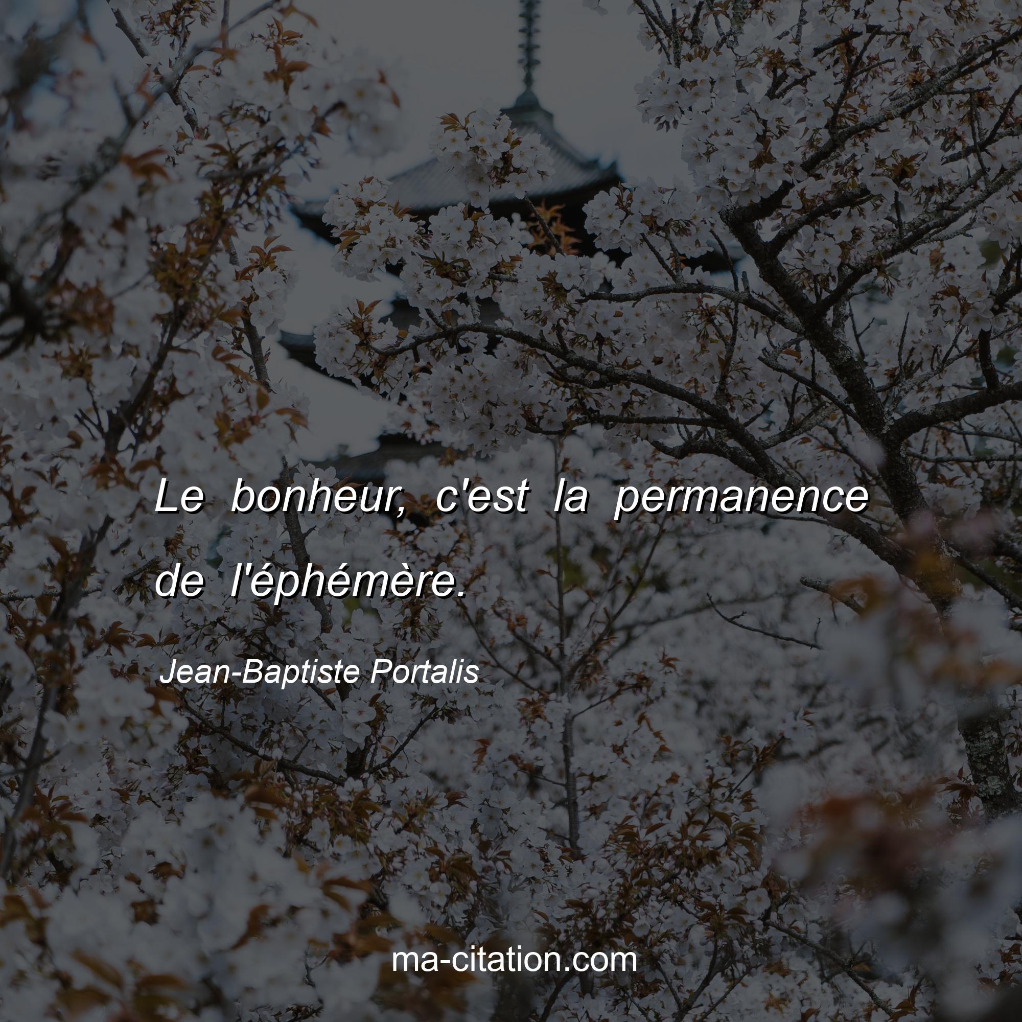 Citation sur la vie de Jean-Baptiste Portalis :Le bonheur, c'est la permanence de l'éphémère.
