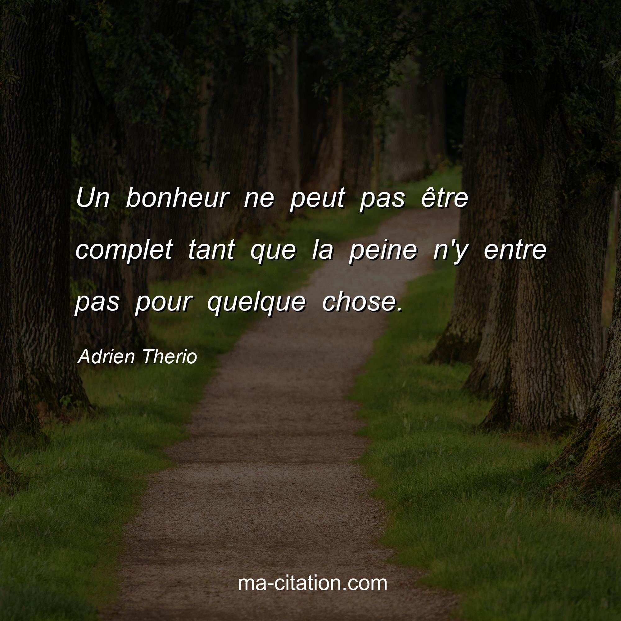 Citation sur la vie d'Adrien Therio :Un bonheur ne peut pas être complet tant que la peine n'y entre pas pour quelque chose.