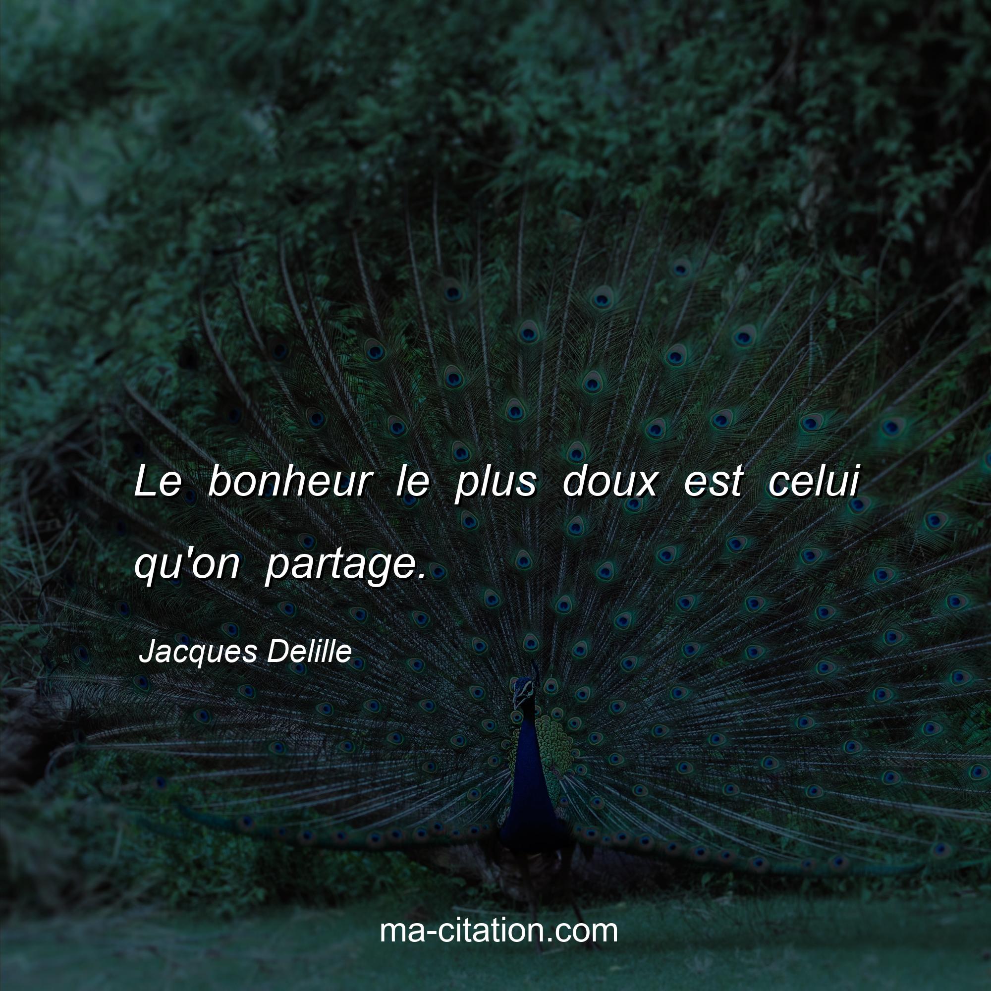 Jacques Delille est l'auteur de la citation sur la vie "Le bonheur le plus doux est celui qu'on partage.".