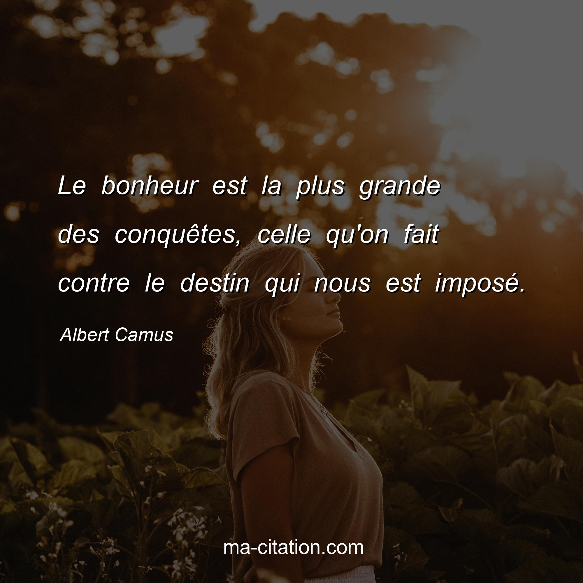 Citation sur la vie d'Albert Camus :Le bonheur est la plus grande des conquêtes, celle qu'on fait contre le destin qui nous est imposé.