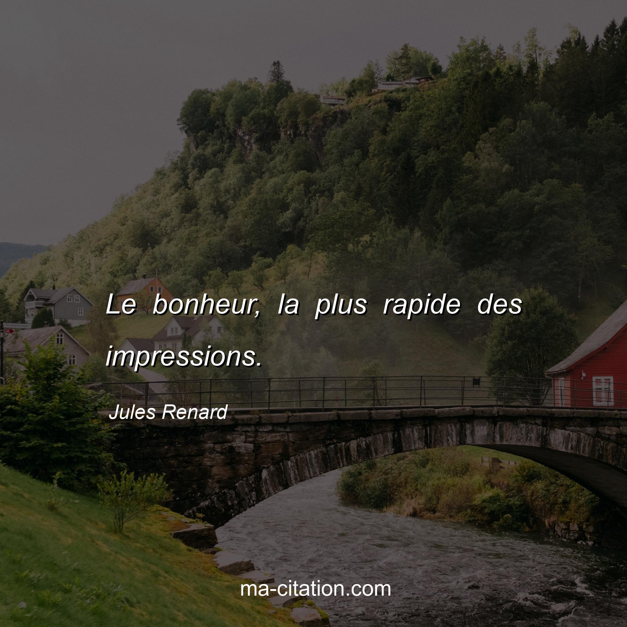 Citation sur la vie de Jules Renard :Le bonheur, la plus rapide des impressions.