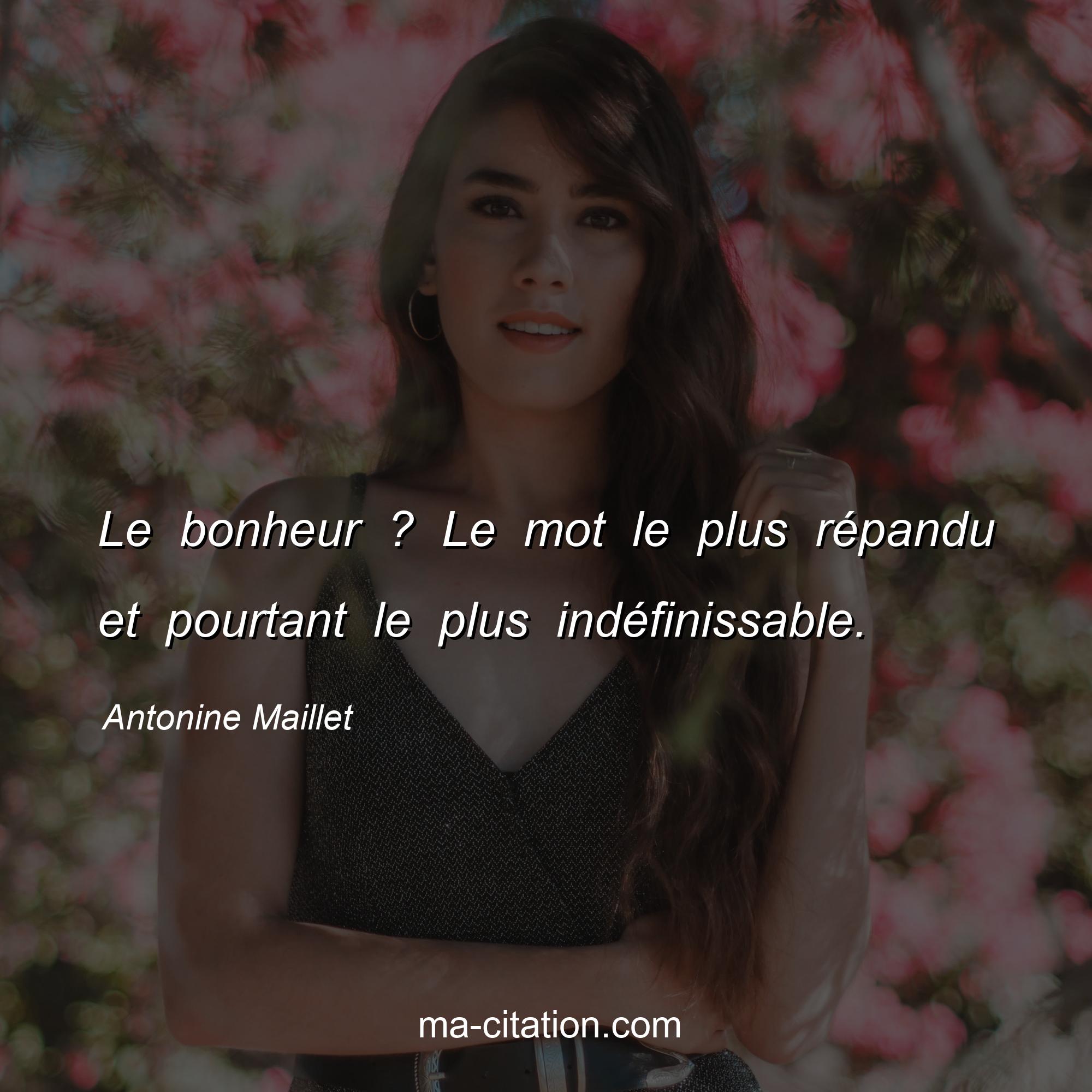 Citation sur la vie d'Antonine Maillet :Le bonheur ? Le mot le plus répandu et pourtant le plus indéfinissable.
