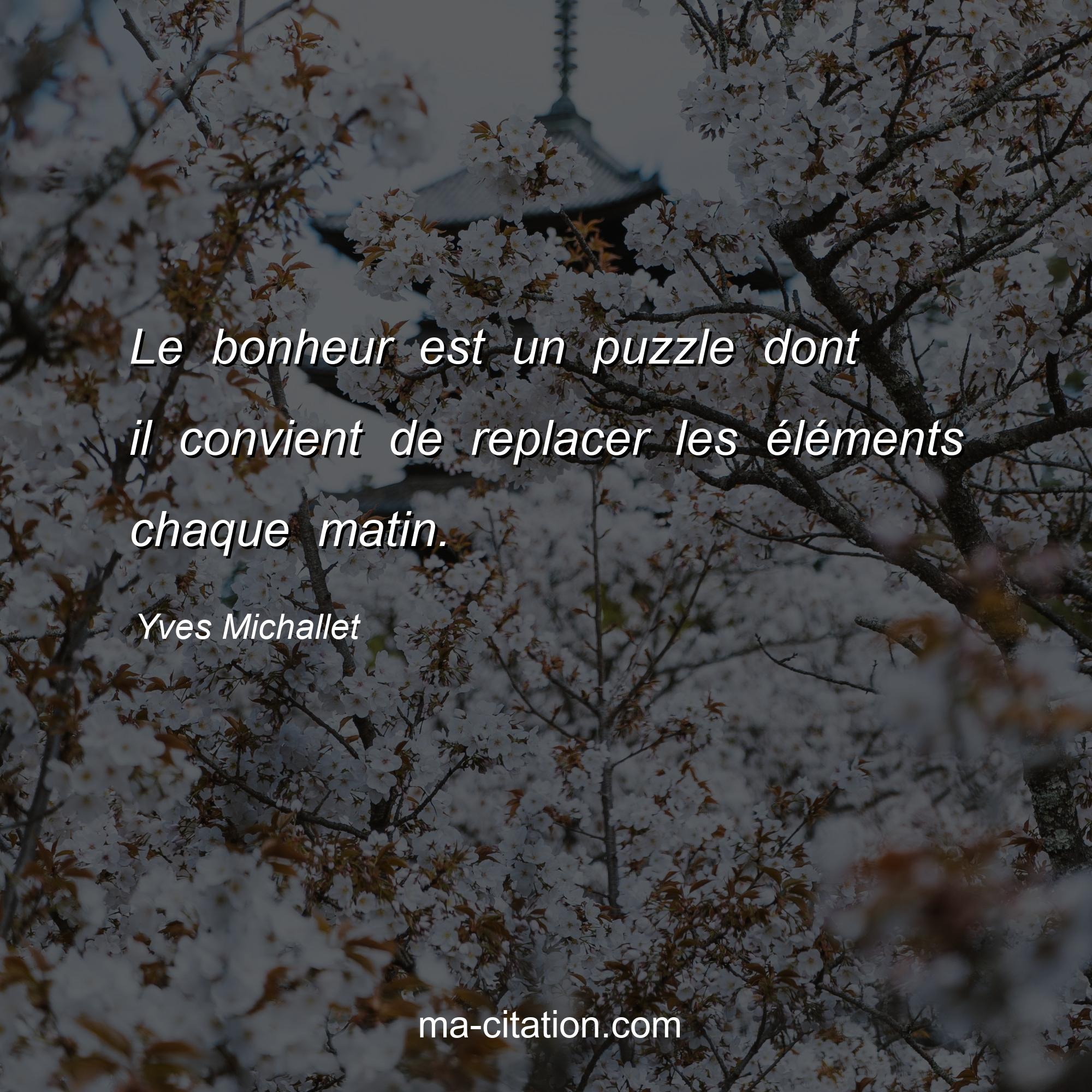 Yves Michallet est l'auteur de la citation sur la vie "Le bonheur est un puzzle dont il convient de replacer les éléments chaque matin.".