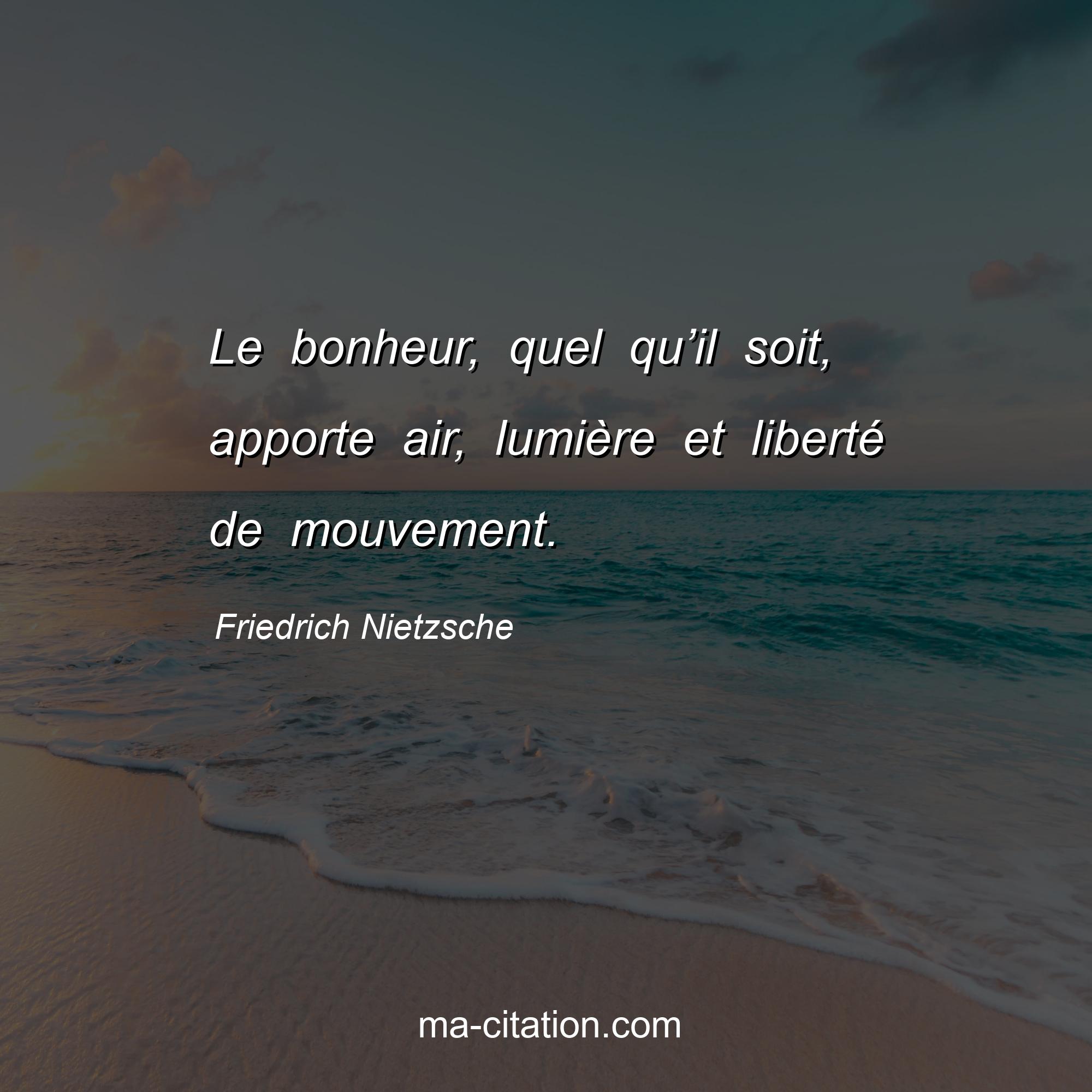 Citation sur la vie de Friedrich Nietzsche :Le bonheur, quel qu’il soit, apporte air, lumière et liberté de mouvement.