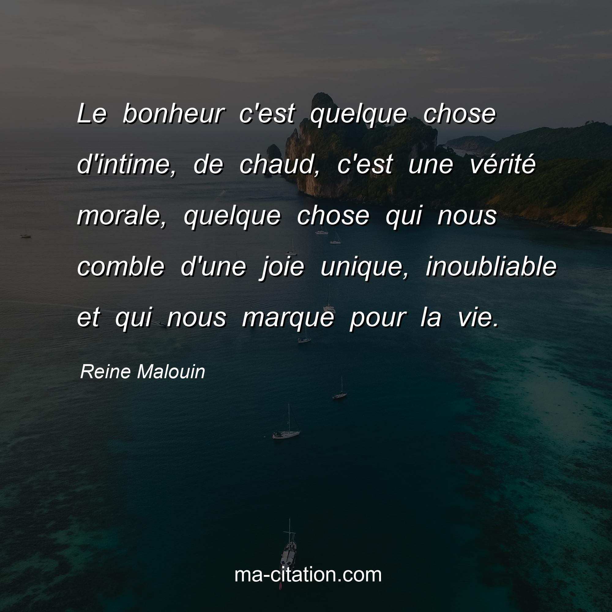 Reine Malouin est l'auteur de la citation sur la vie "Le bonheur c'est quelque chose d'intime, de chaud, c'est une vérité morale, quelque chose qui nous comble d'une joie unique, inoubliable et qui nous marque pour la vie.".