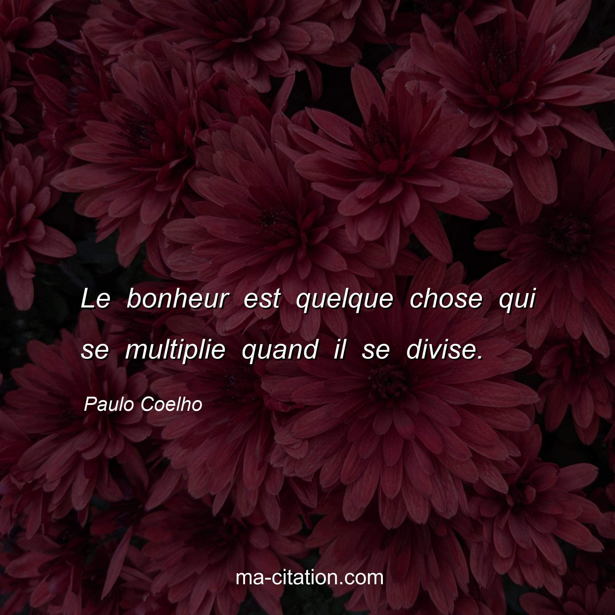 Citation sur la vie de Paulo Coelho :Le bonheur est quelque chose qui se multiplie quand il se divise.