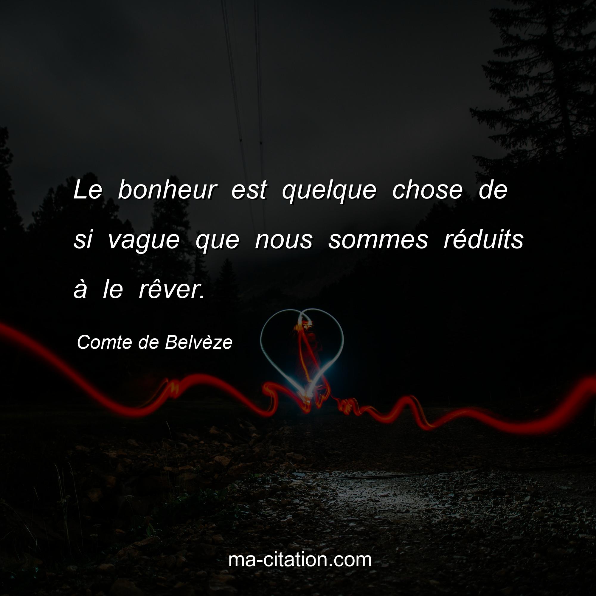 Comte de Belvèze est l'auteur de la citation sur la vie "Le bonheur est quelque chose de si vague que nous sommes réduits à le rêver.".