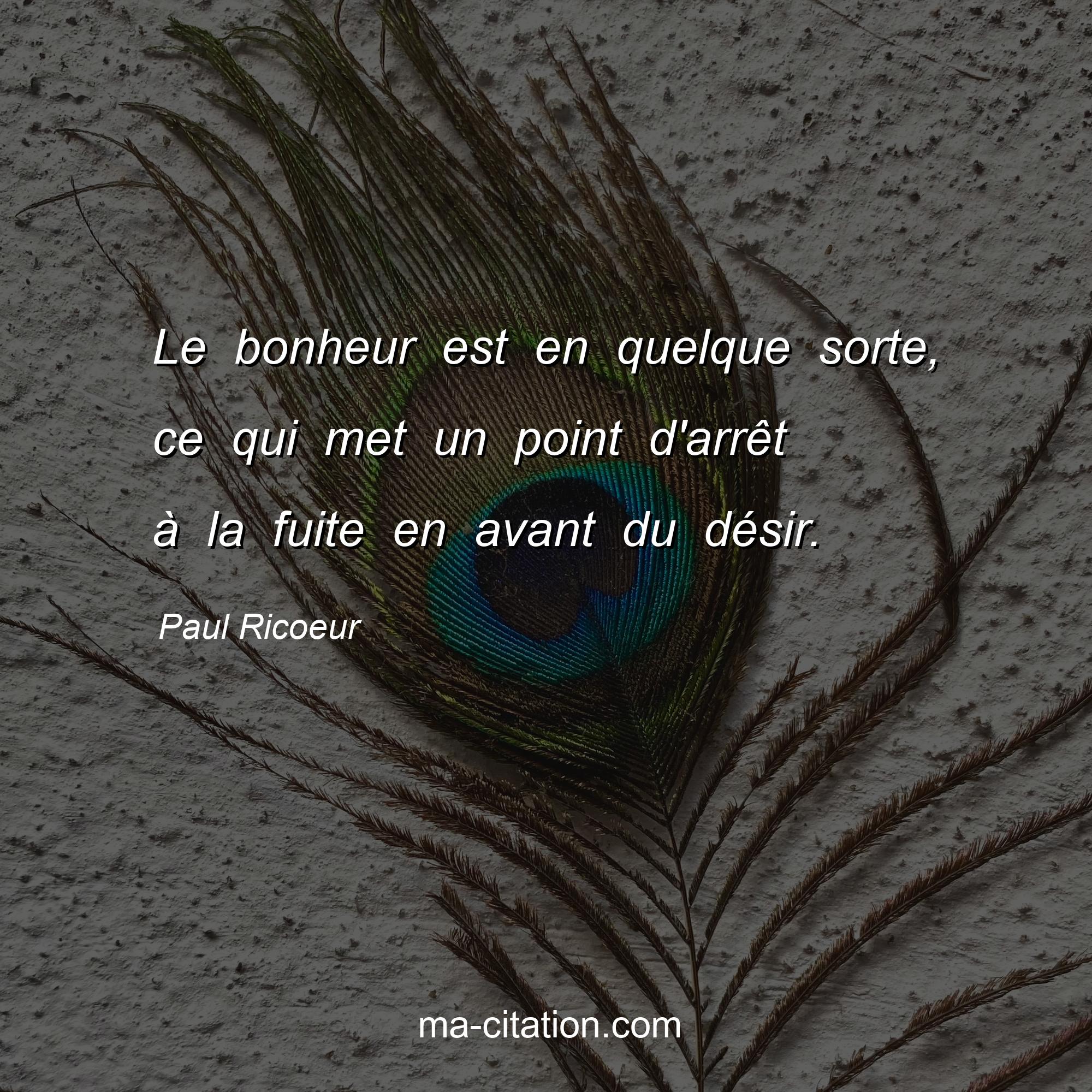 Citation sur la vie de Paul Ricoeur :Le bonheur est en quelque sorte, ce qui met un point d'arrêt à la fuite en avant du désir.