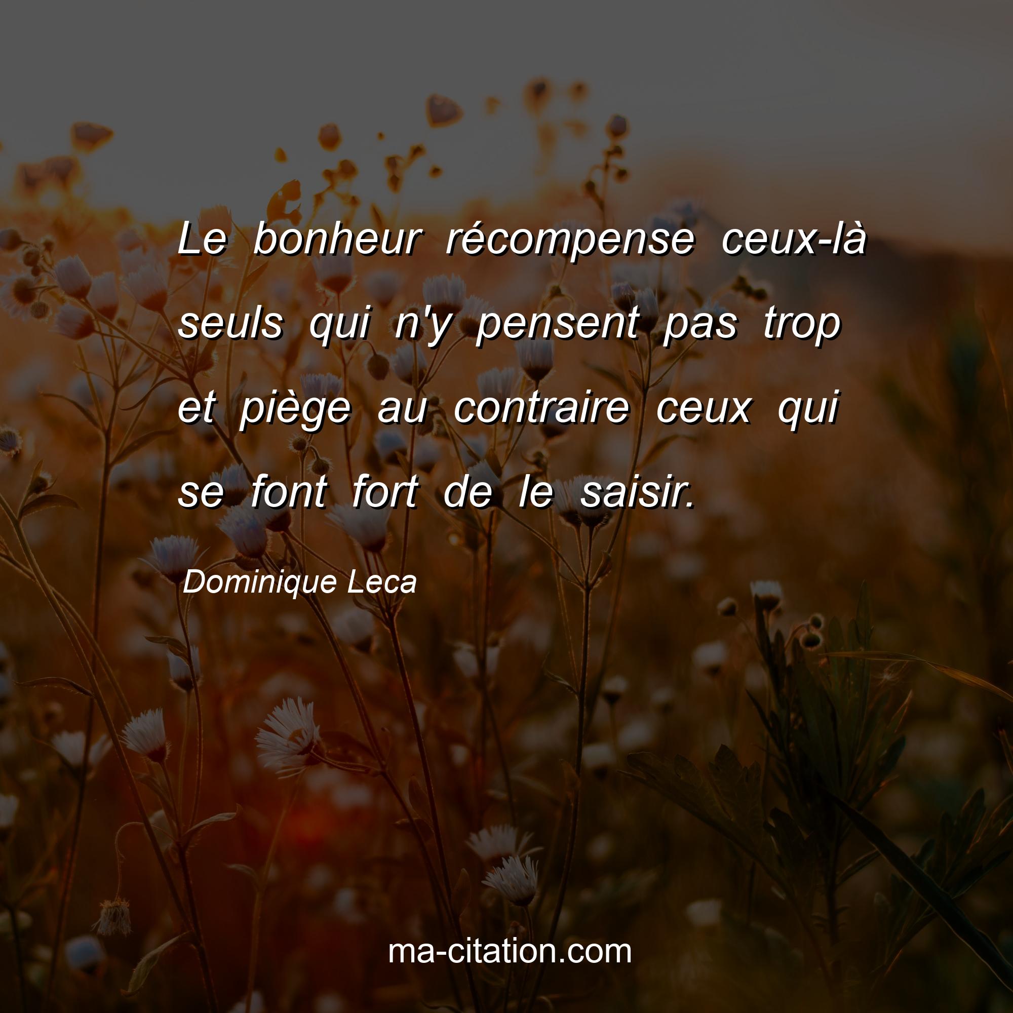 Dominique Leca est l'auteur de la citation sur la vie "Le bonheur récompense ceux-là seuls qui n'y pensent pas trop et piège au contraire ceux qui se font fort de le saisir.".