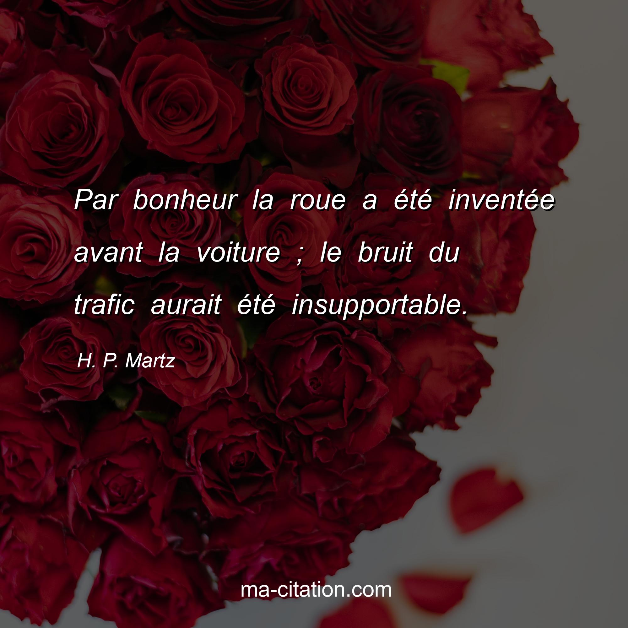 H. P. Martz est l'auteur de la citation sur la vie "Par bonheur la roue a été inventée avant la voiture ; le bruit du trafic aurait été insupportable.".