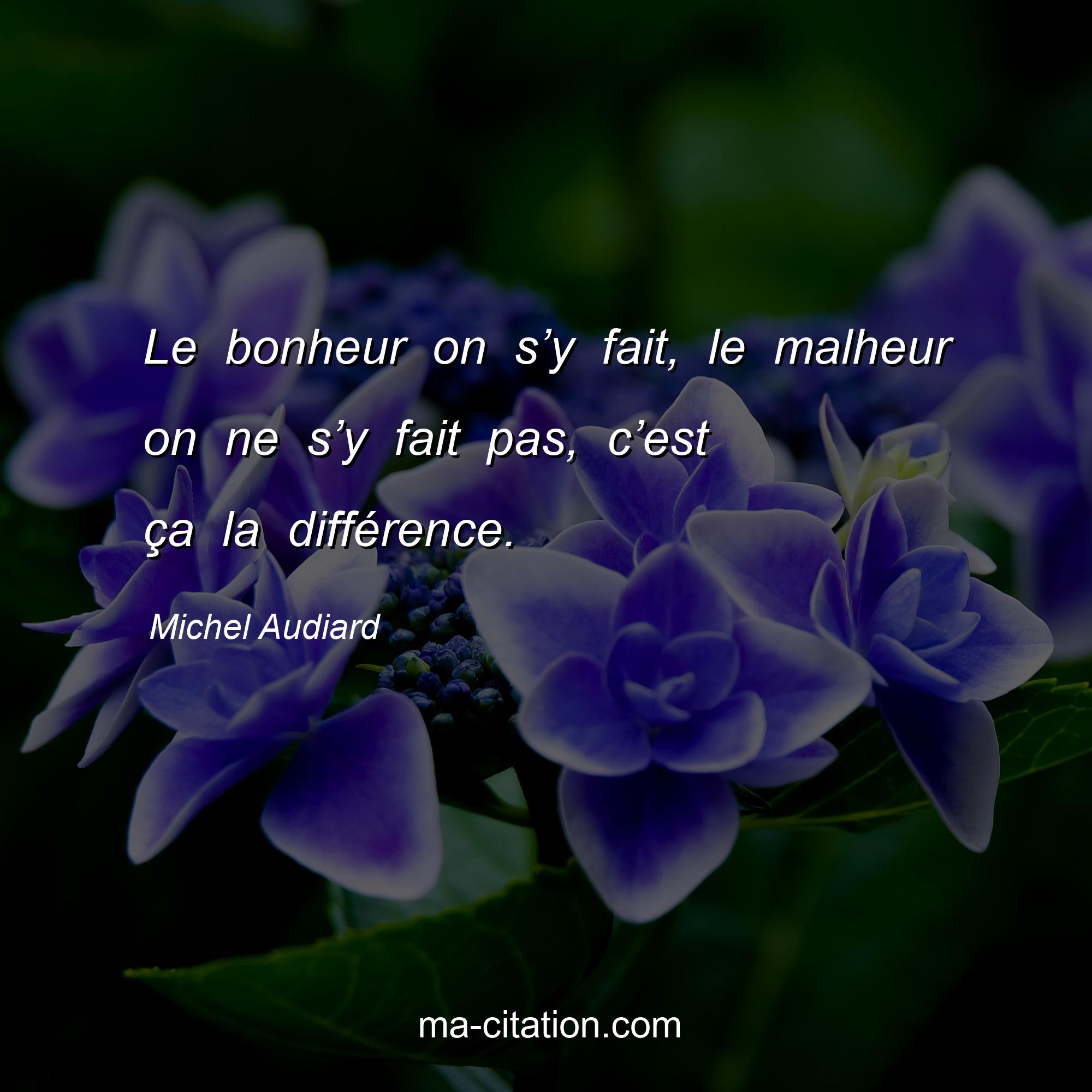 Citation sur la vie de Michel Audiard :Le bonheur on s’y fait, le malheur on ne s’y fait pas, c’est ça la différence.