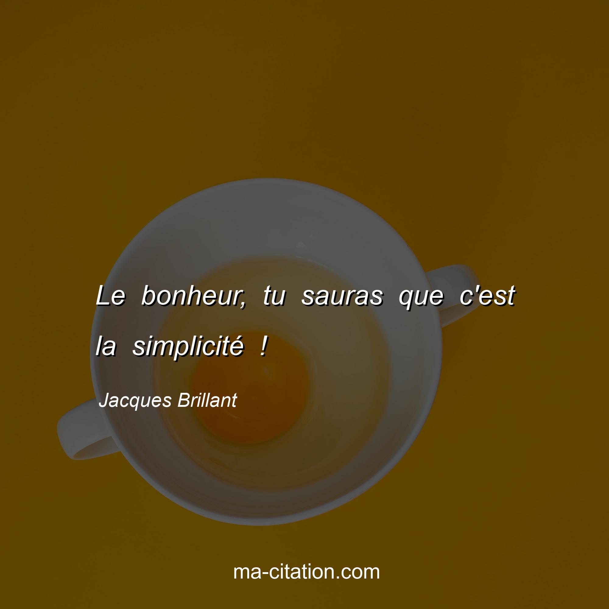 Jacques Brillant est l'auteur de la citation sur la vie "Le bonheur, tu sauras que c'est la simplicité !".