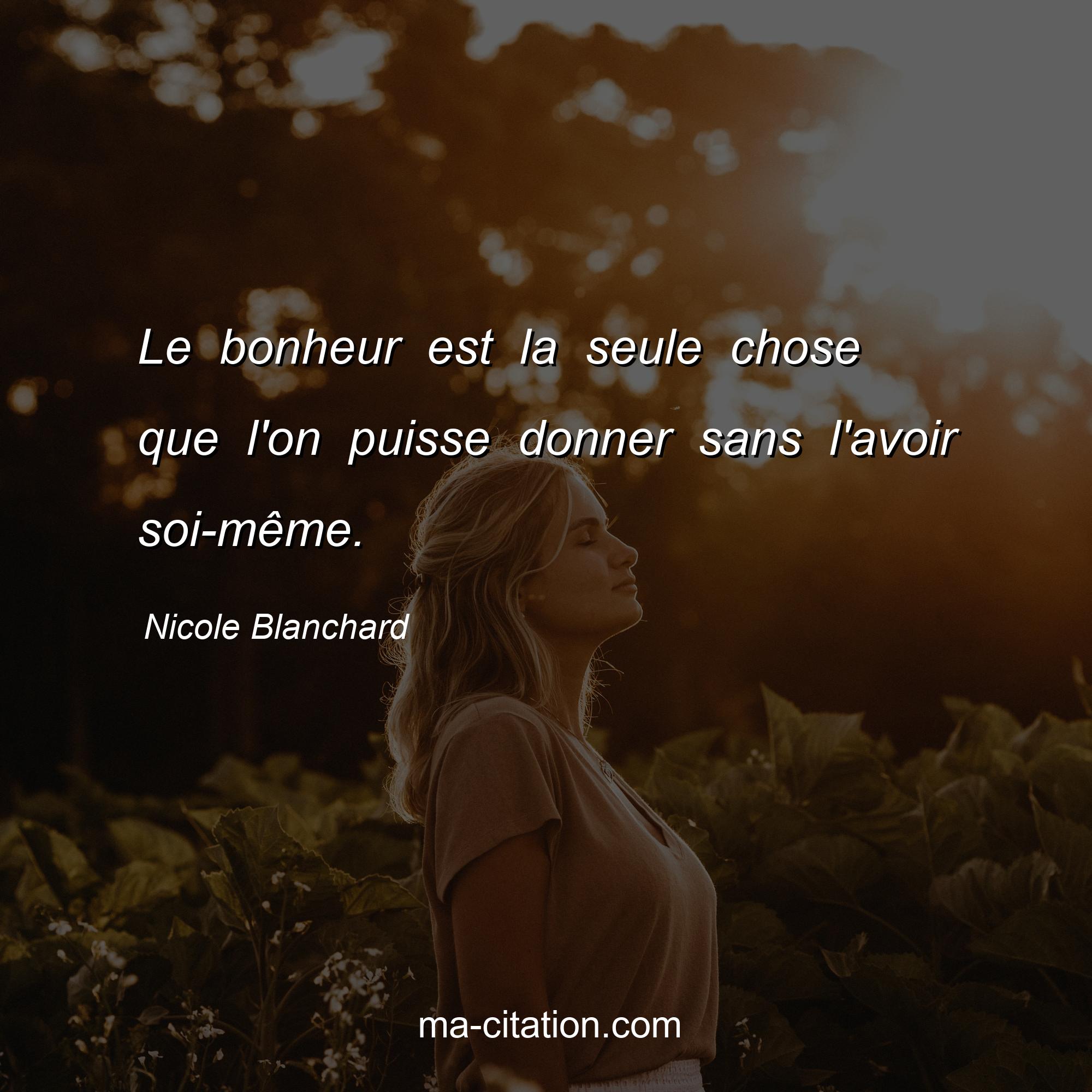 Citation sur la vie de Nicole Blanchard :Le bonheur est la seule chose que l'on puisse donner sans l'avoir soi-même.