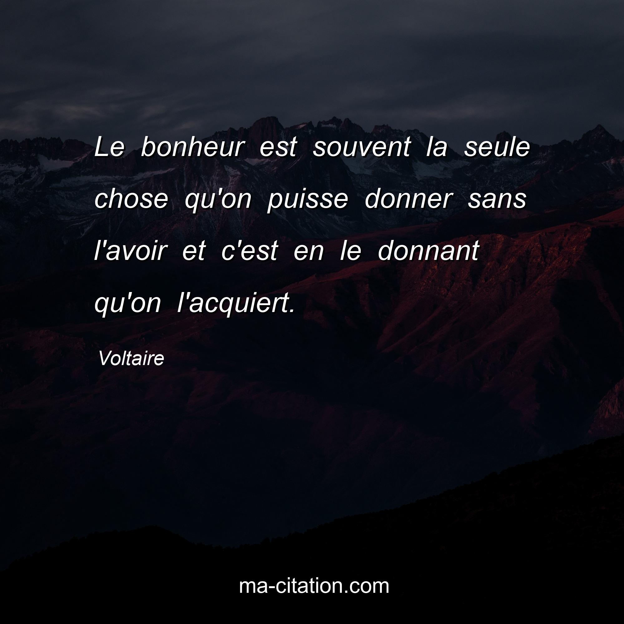 Citation sur la vie de Voltaire :Le bonheur est souvent la seule chose qu'on puisse donner sans l'avoir et c'est en le donnant qu'on l'acquiert.