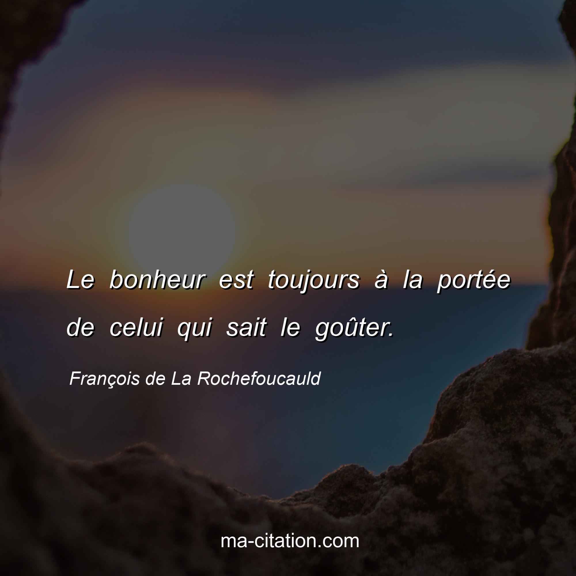 Citation sur la vie de François de La Rochefoucauld :Le bonheur est toujours à la portée de celui qui sait le goûter.