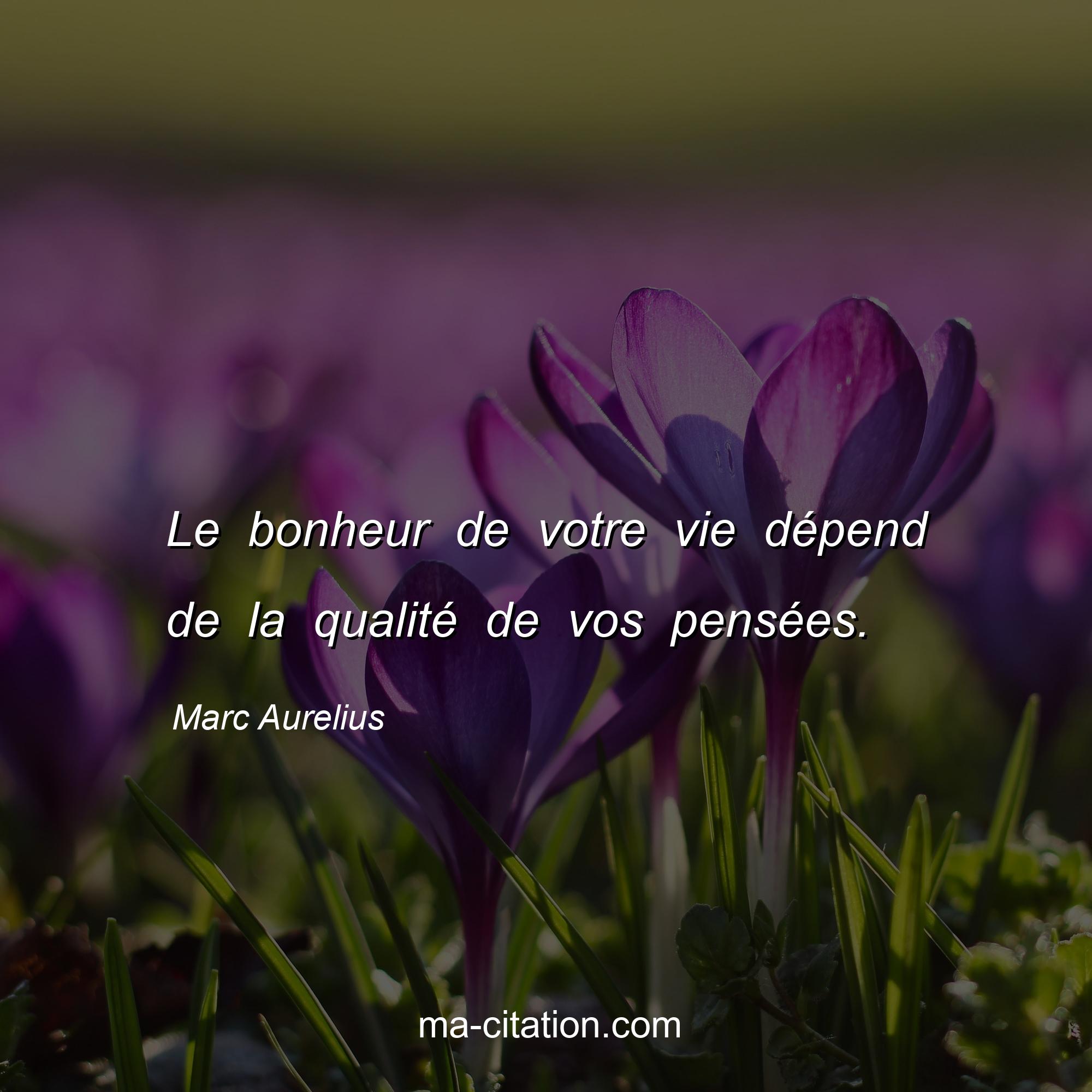 Citation sur la vie de Marc Aurelius :Le bonheur de votre vie dépend de la qualité de vos pensées.